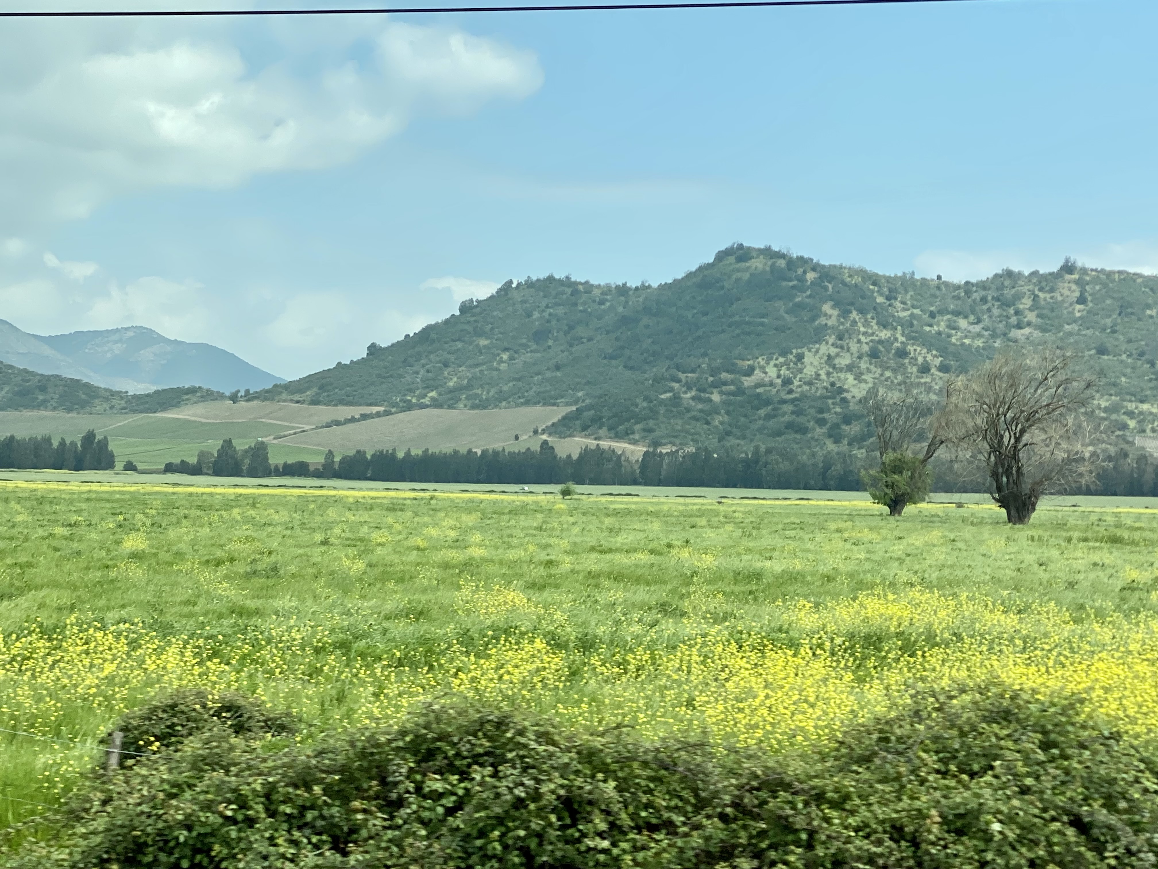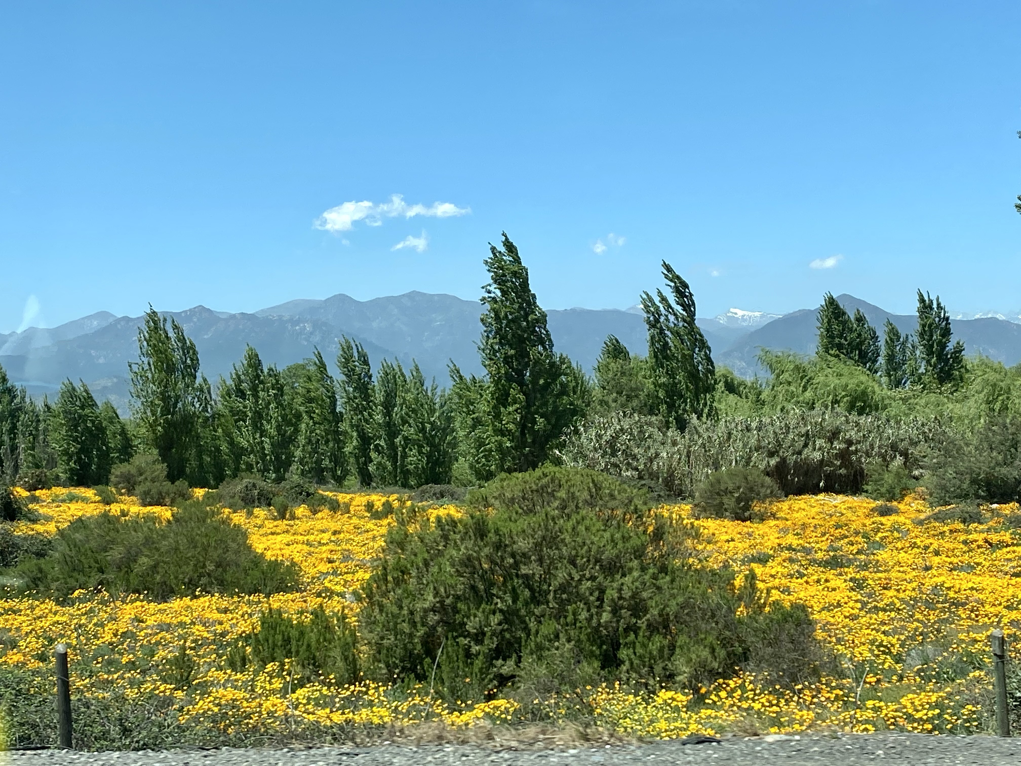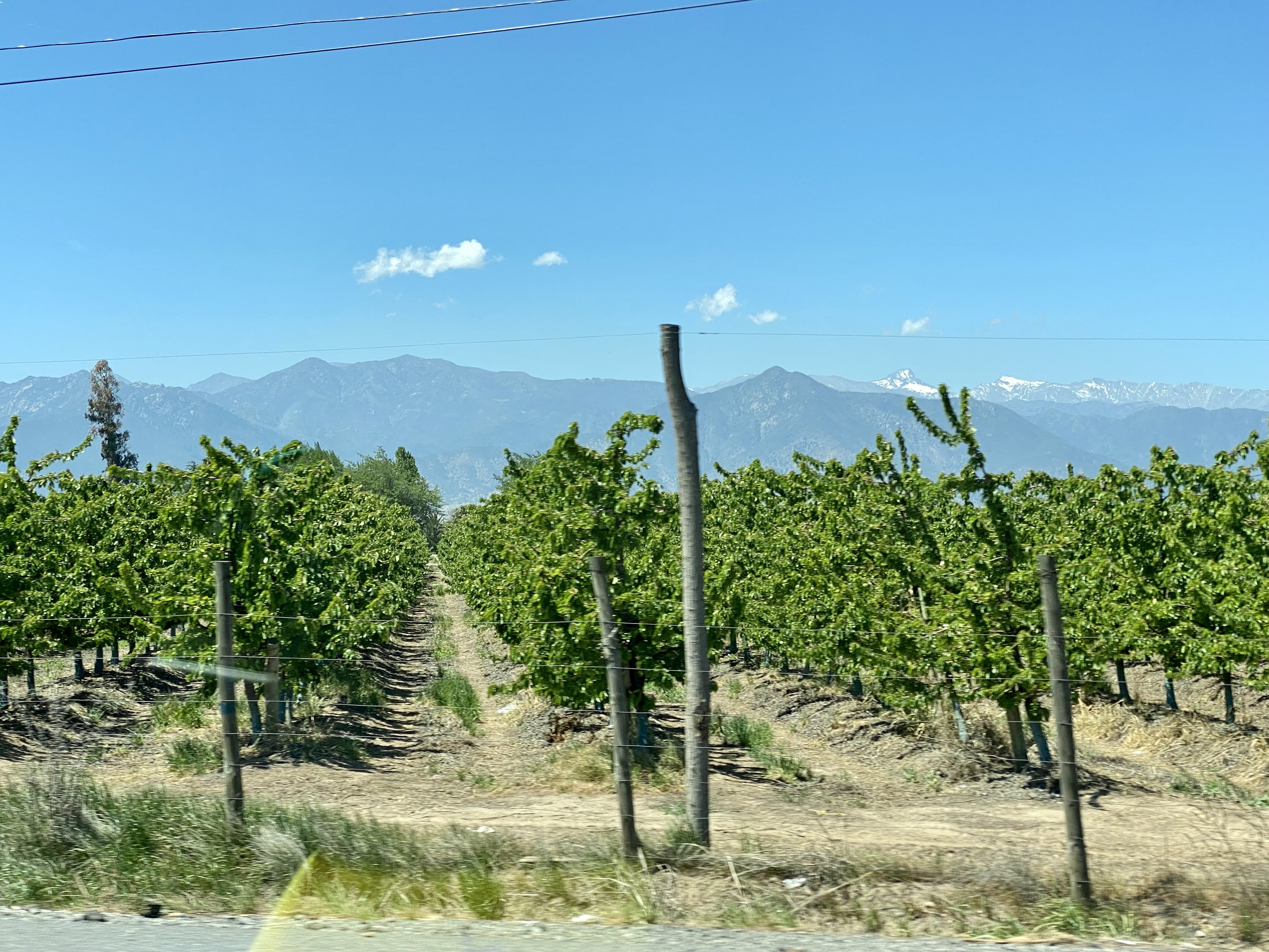 After leaving a very smoggy Santiago, we drove 3 ½ hours south to Talca where there were blue skies and views of the snowcapped Andes. We left autumn in North America to come to springtime in South America. As we drove, we saw beautiful yellow and orange wildflowers and wild roses along the roadside. We passed orchards and vineyards where they grow grapes, peaches, kiwi, blueberries, strawberries, and cherries. There were horses and sheep grazing but few cows. Chile imports beef from Argentina, Uruguay, and Brazil. We also saw Del Monte, Dole and Nabisco processing plants along the way.