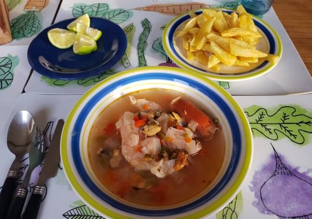 When we arrived in Talca we met the president of the Talca stake who is our local church leader in this area. He took us to a restaurant on the Rio Claro River and ordered a typical Chilean family style meal called Pollo y Mariscos. It consisted of chicken on the bone and clams in a brothy soup. It was served with french fries, biscuits, salsa, and sopapillas and was very delicious!