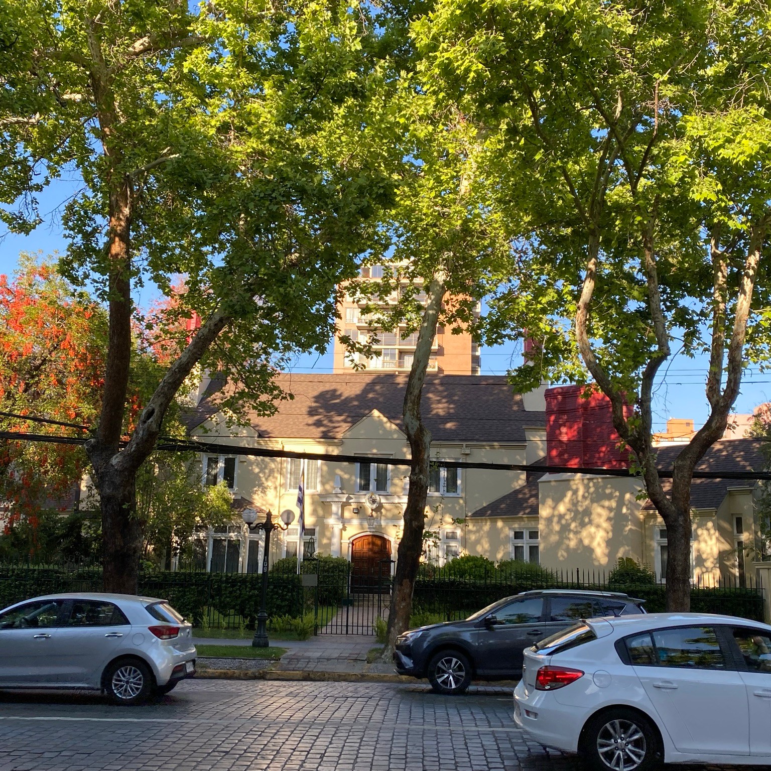 The Uruguay and China embassies down the street from our apartment.