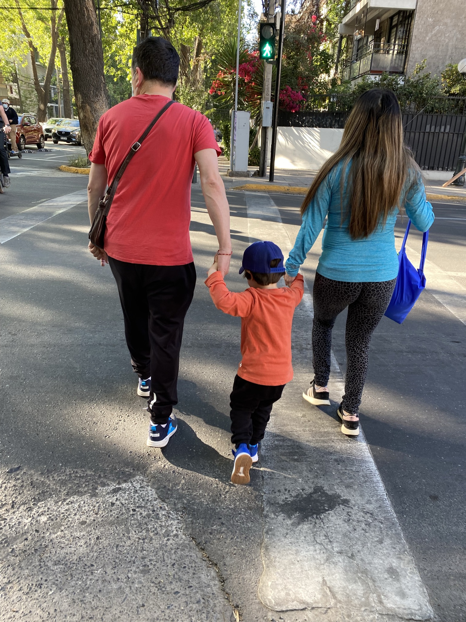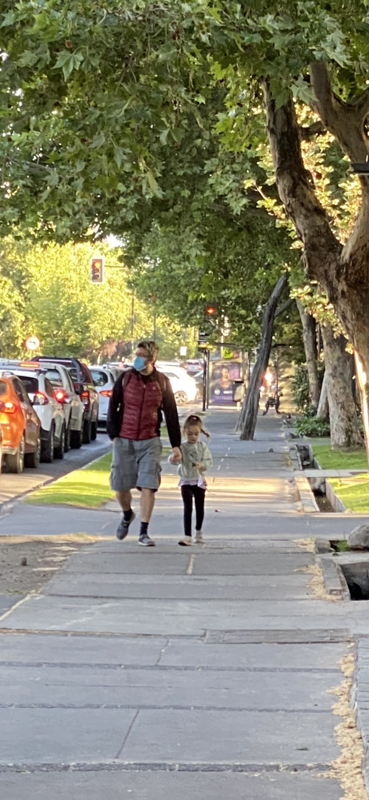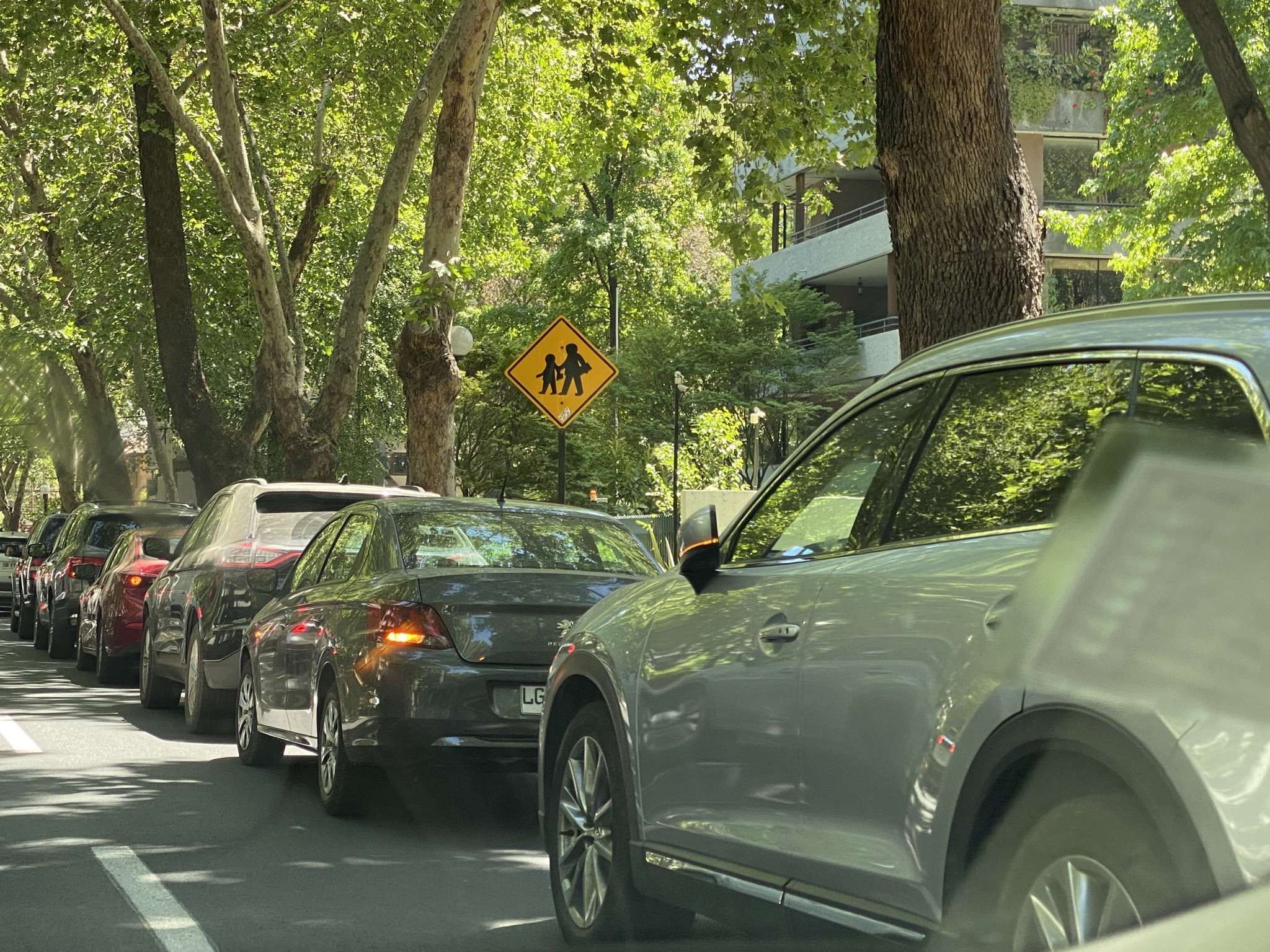 These parents are picking their children up from school. It gives new meaning to the “car pick up line” our children navigate each day to pick up our grandchildren from school. Whether it’s a truck making a delivery or parents picking up a child from school, they park in the traffic lane (backing up traffic for blocks), put on their emergency blinkers and do what they need to do. No honking, no stress. Others wait patiently while parents form a long line to collect their children to go home for lunch.