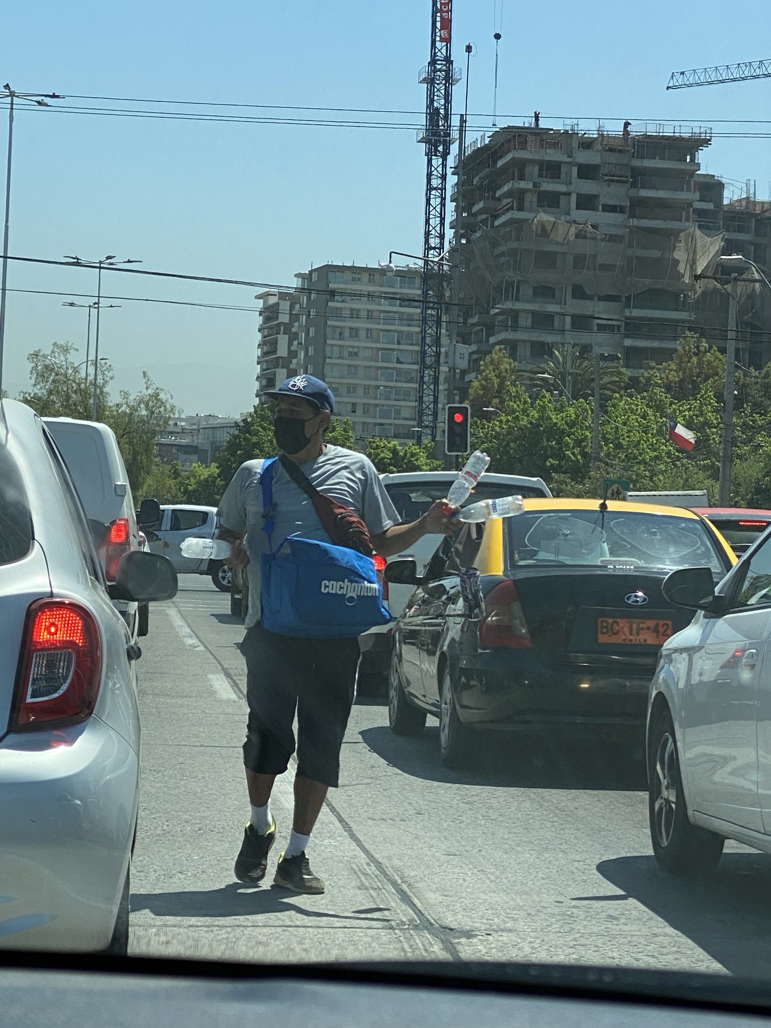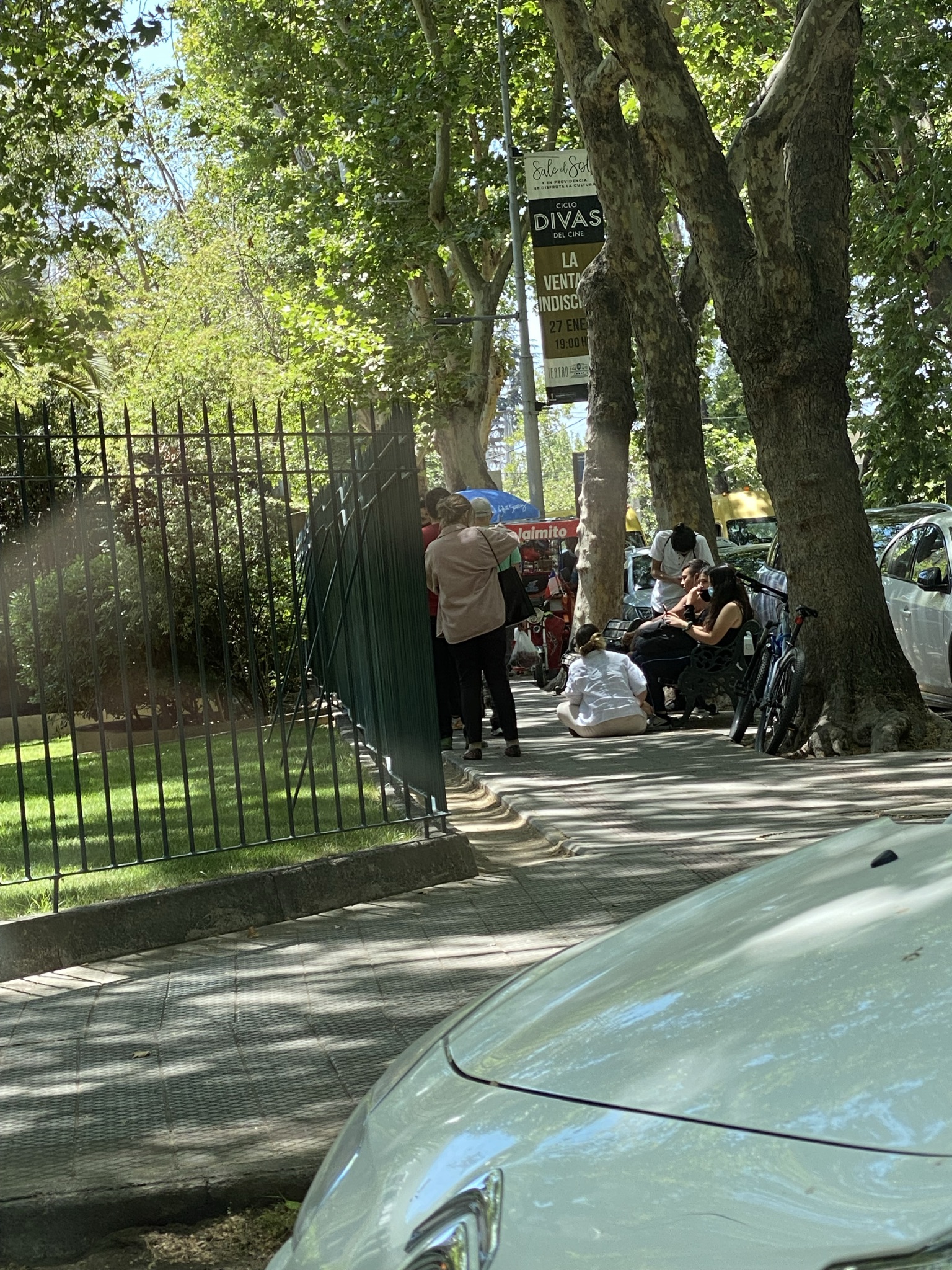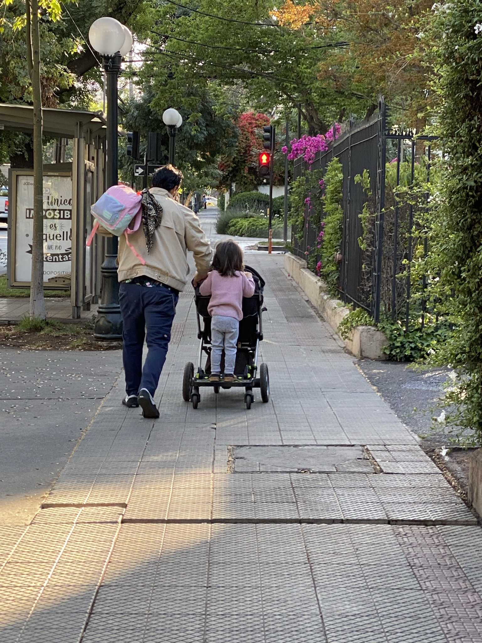 These parents are picking their children up from school. It gives new meaning to the “car pick up line” our children navigate each day to pick up our grandchildren from school. Whether it’s a truck making a delivery or parents picking up a child from school, they park in the traffic lane (backing up traffic for blocks), put on their emergency blinkers and do what they need to do. No honking, no stress. Others wait patiently while parents form a long line to collect their children to go home for lunch.