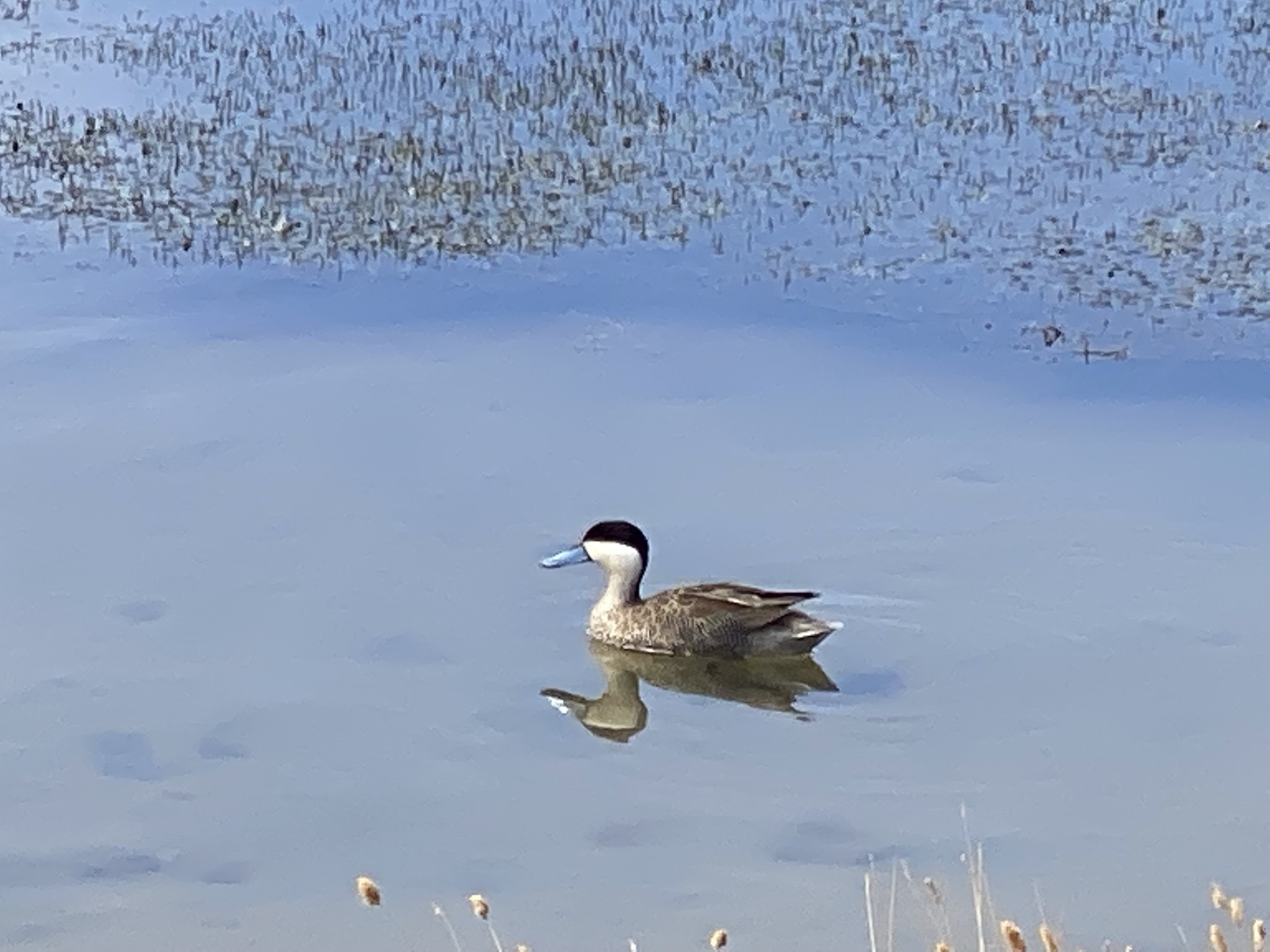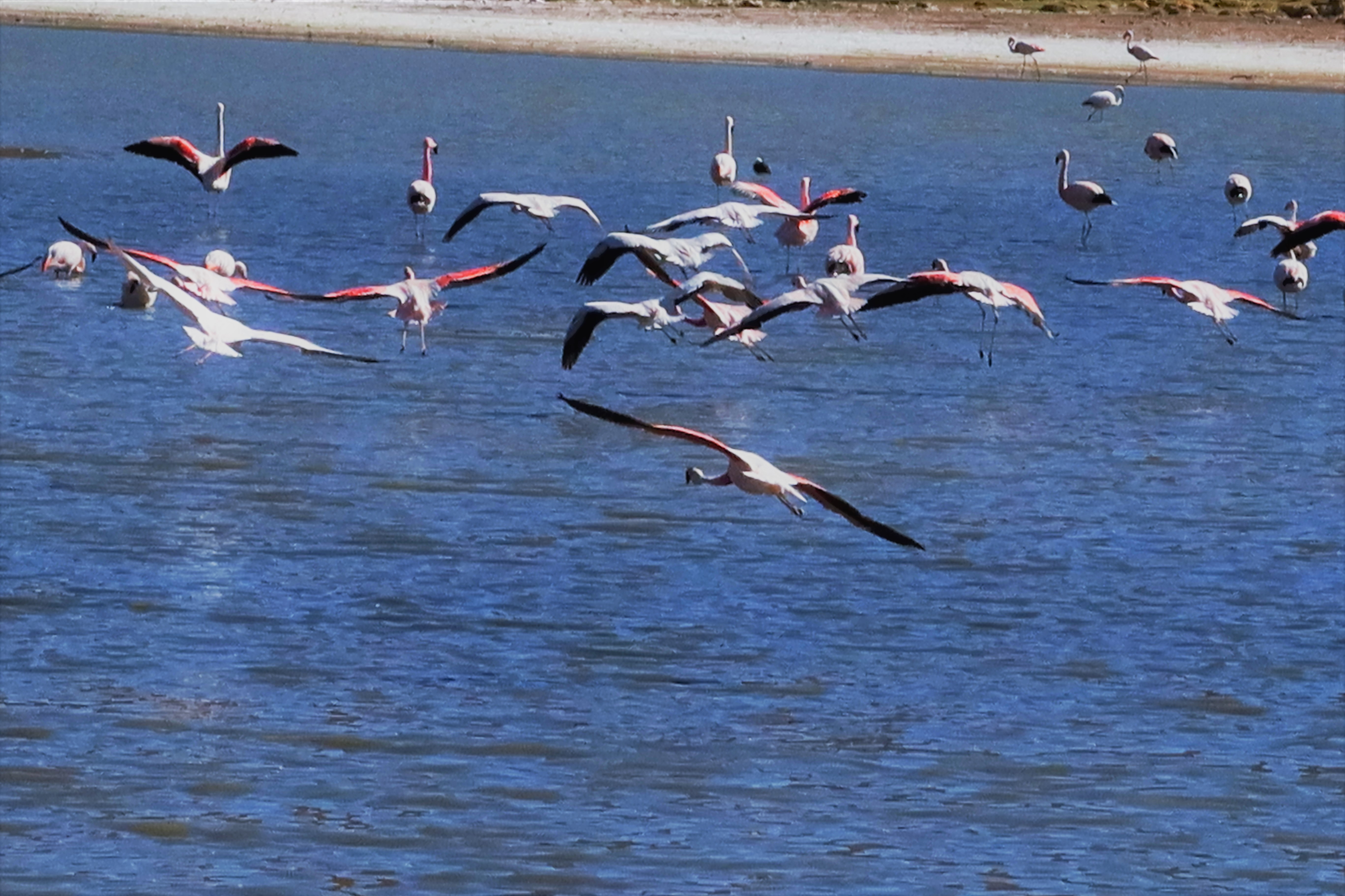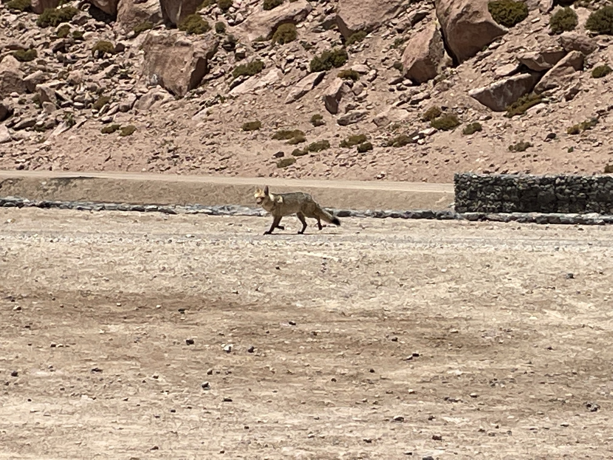 The next day we went to Los Flamencos National Reserve. It was another bumpy dirt road with lots of curves and steep climbs. We reached an altitude of 13,000 feet and were not far from the Bolivian border. We saw hundreds of flamingos in a lagoon. At one point some took flight. We are told that is a rare sight. The different high-altitude ecosystems we drove through were so diverse. A favorite was the wetlands. The mirror-reflection lagoons, surrounded by yellow grass with the backdrop of mountains and volcanoes were amazing. We watched orange-footed coots feeding their babies and saw blue-billed ducks, a fox, and grazing vicuna. Vicunas are related to the llama and are believed to be the wild ancestor of the domesticated alpaca. They are one of two wild South American camelids which live in the high alpine areas of the Andes. After another snack buffet in the wilderness and we headed back into San Pedro de Atacama.
