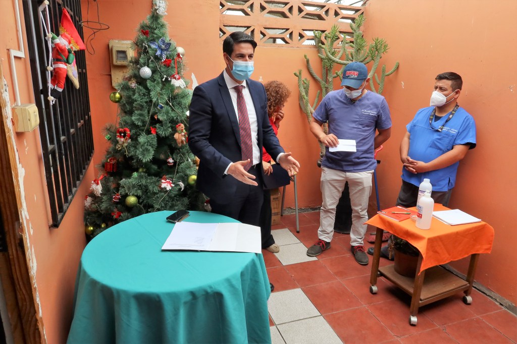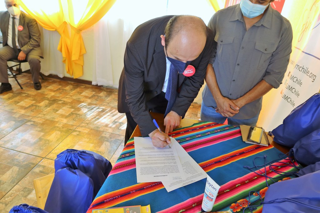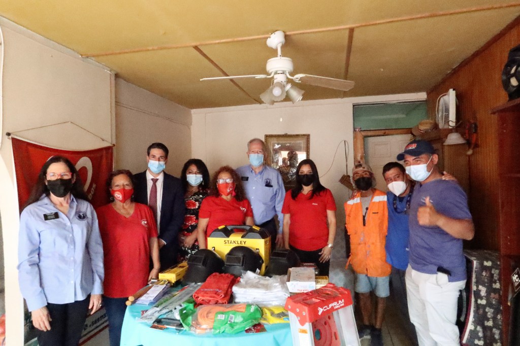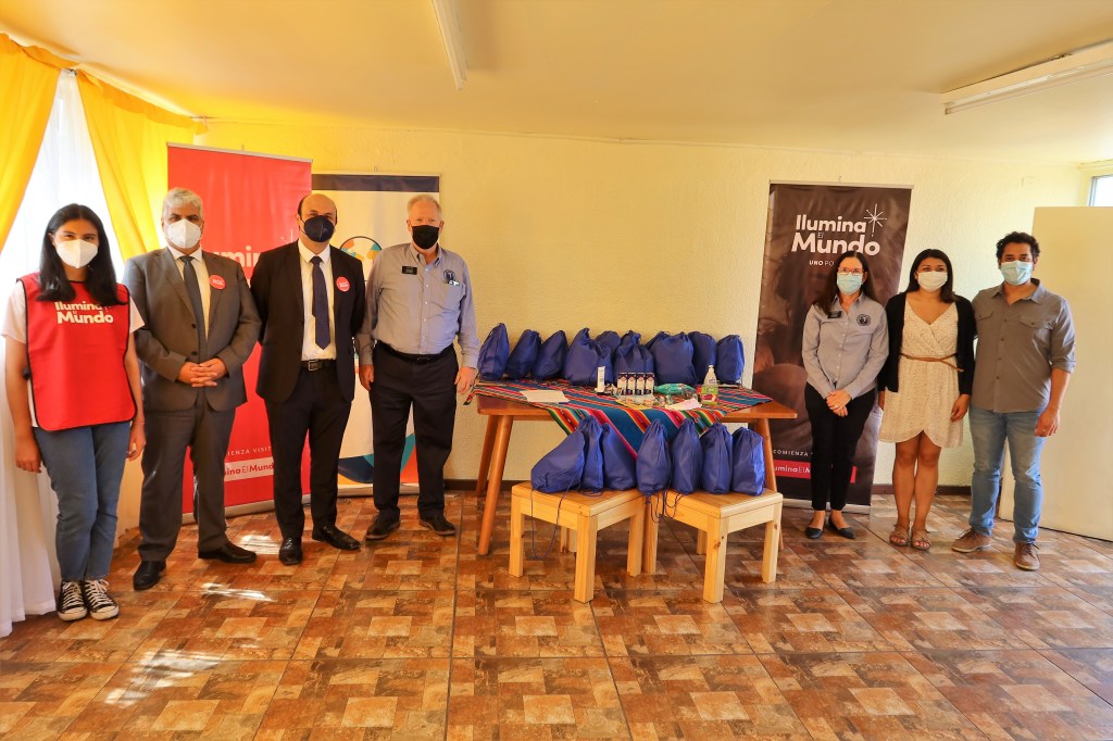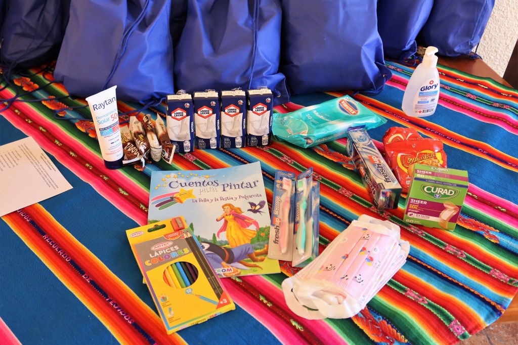 The next entrega ceremony was at Servico Jesuita a Migrante. This project provided items for 200 comfort kits for refugee children that included milk, diapers, cookies, wet wipes, colored pencils, coloring books, masks, toothbrushes, toothpaste, and band-aids. Since August, 700 immigrants arrived in Antofagasta from Venezuela and were sleeping in the bus terminals. This exodus forced the displacement of thousands of families and continues today.