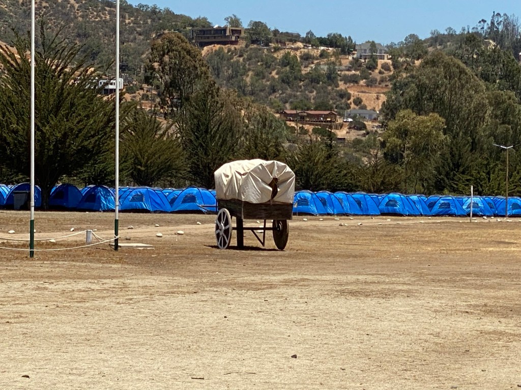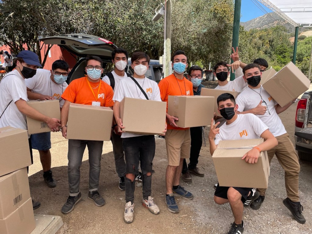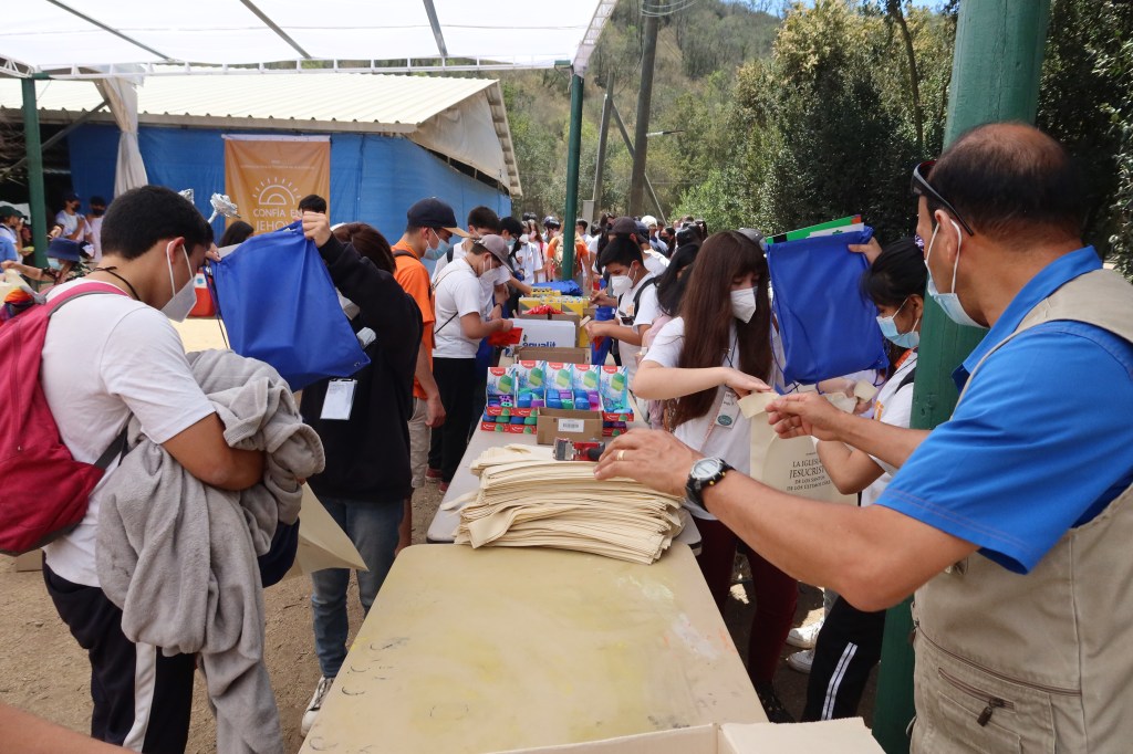 This PFJ event was held at a 1,500-acre campground 1 ½ hours outside of Santiago. 400 young men and women from the eastern Santiago metro area were in attendance. We spent the day with them and supervised the humanitarian service project to assemble school kits that will be given to children in rural schools throughout the country. We had three wonderful missionary couples that helped us. We have already introduced you to Elder and Sister Lindquist from Idaho who serve as legal counsel and in the Pathway program. (See Nov 14, 2021 post for details of the Pathway program.) Elder and Sister Acevedo are service missionaries serving from home in the Santiago East mission office and at the Santiago Temple. Elder and Sister Salgado are service missionaries, also serving from home. They volunteer three days a week in one of the bishops’ storehouses here in Santiago. (see Dec 26, 2021 post for an explanation of what a Bishop’s Storehouse is)