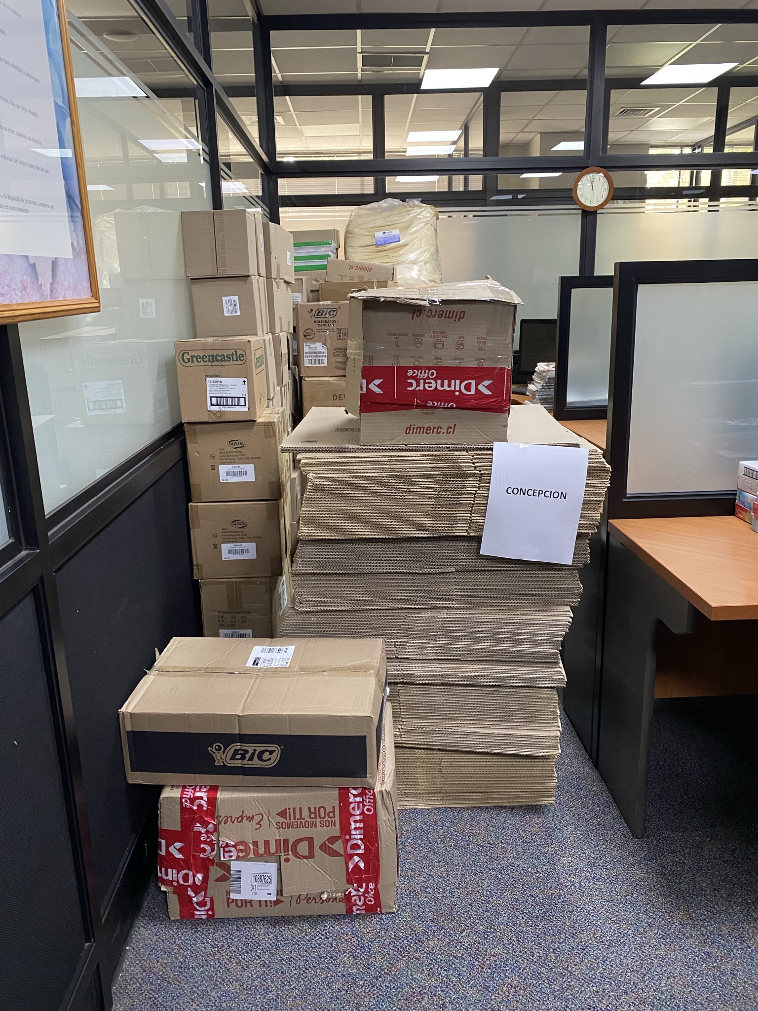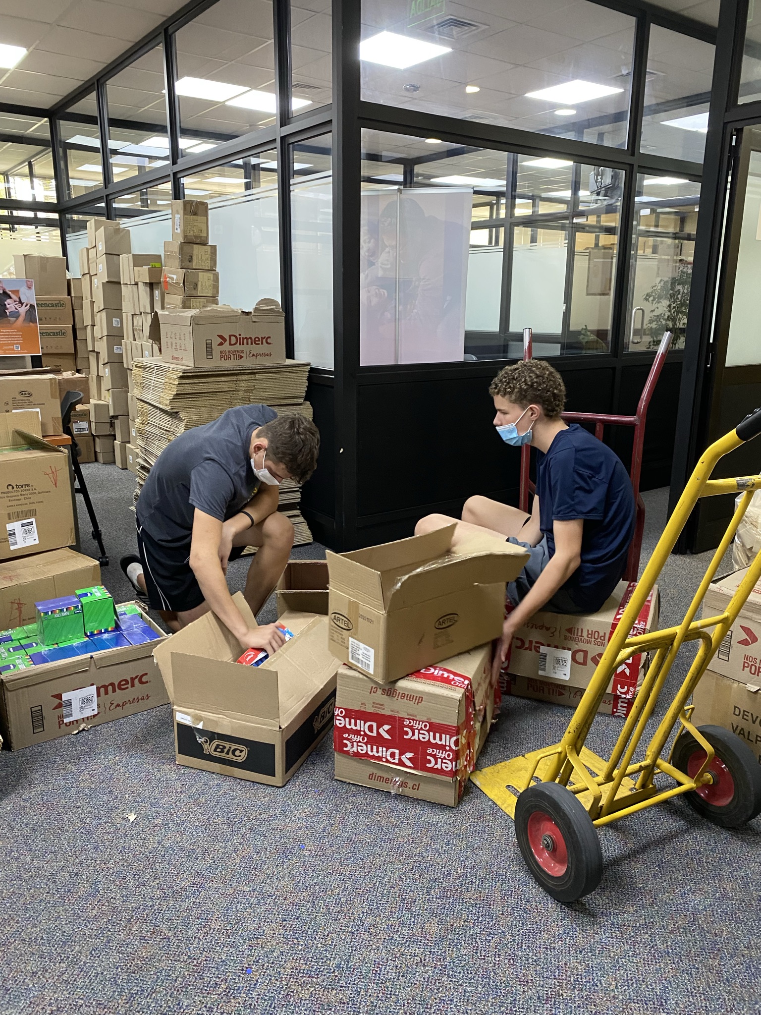 We enlisted the help of our two favorite teenage boys again. Collin Hawkes (his father works at the US Embassy) and Jacob Bohn (his father is mission president of the Santiago East Mission) spent several hours counting and moving heavy boxes for the school kit supplies that will be picked up this week to be sent all over the country for our February assembly projects. Many hands make light work.