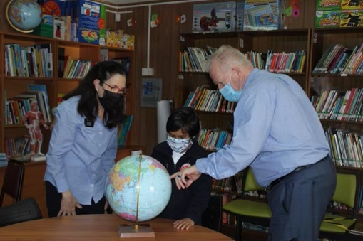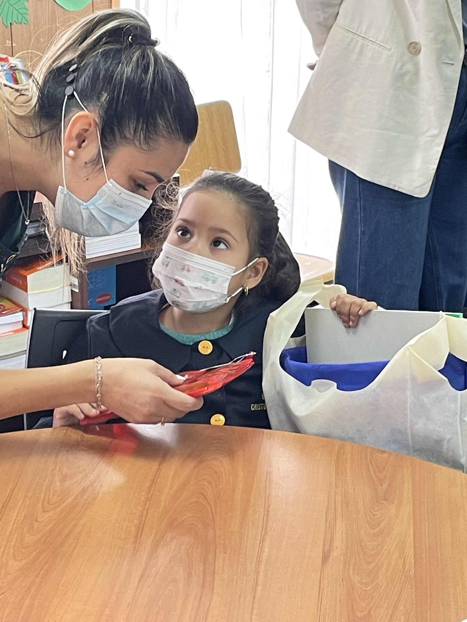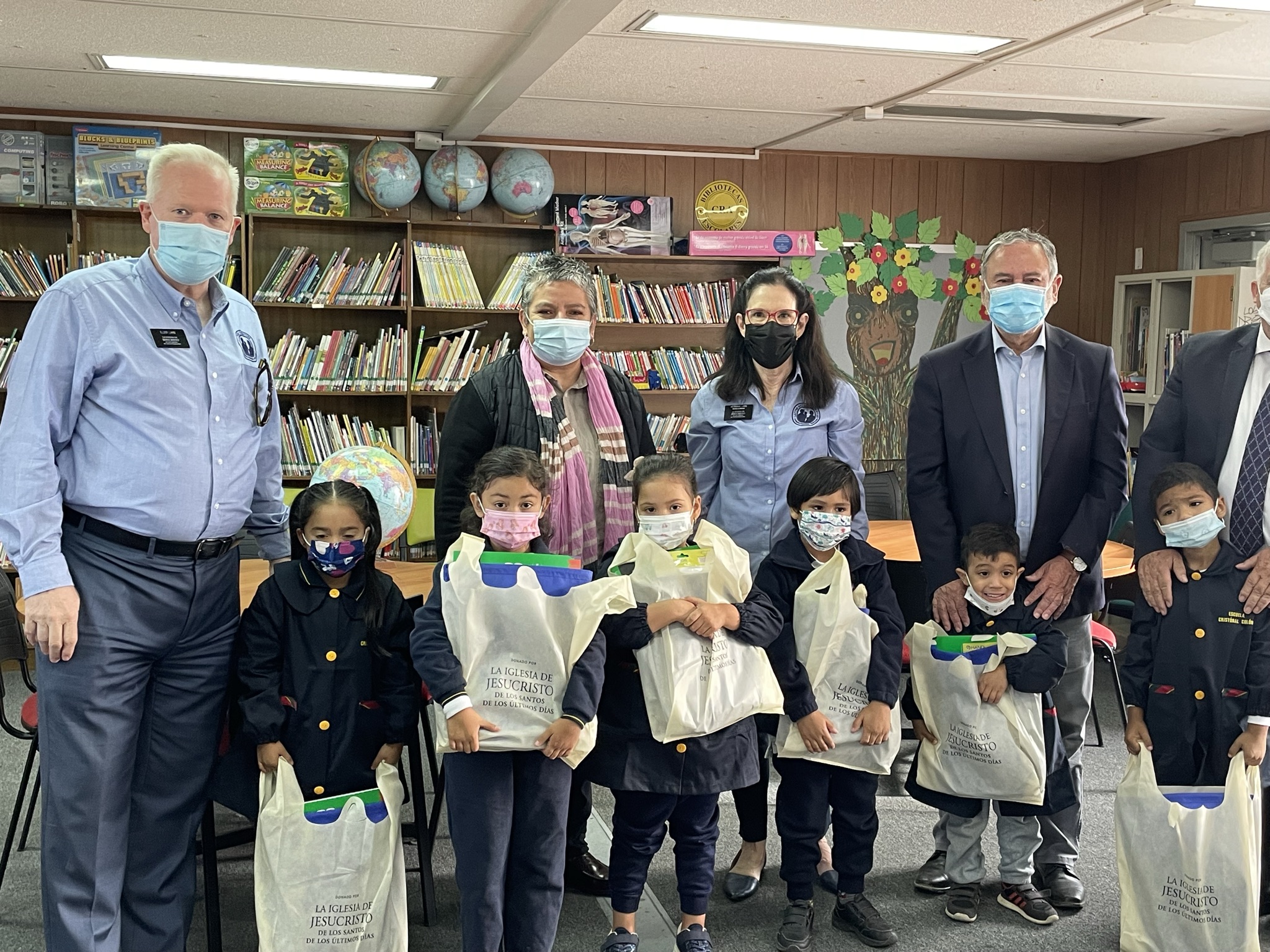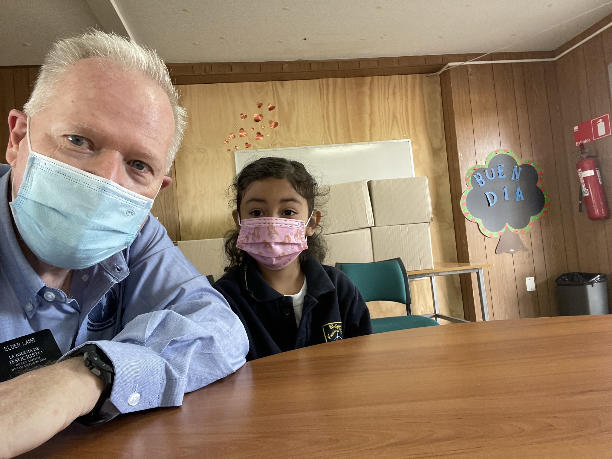 One morning, we attended our first school kit delivery ceremony in Hualpen. It was such a sweet experience, and Hermana Lamb’s teacher heart was so full. The kindergarten and first-grade children were adorable in their school smocks. One little boy was so interested in the globe, he wandered away from the other children and just kept spinning it. We went over and showed him where we were from, and he told us he was from Venezuela. Many of the children at Colegio Cristobal Colon were immigrants from Venezuela, Peru, Columbia, and Bolivia. This commune is in a very poor part of town and this donation gave these children much-needed school supplies.