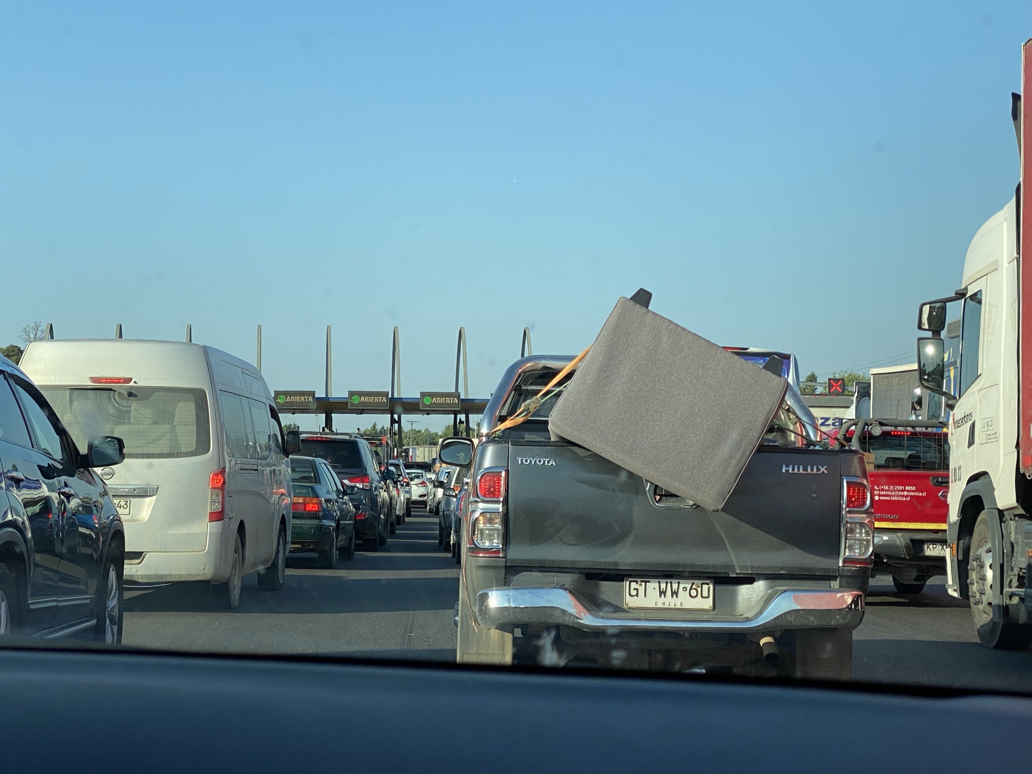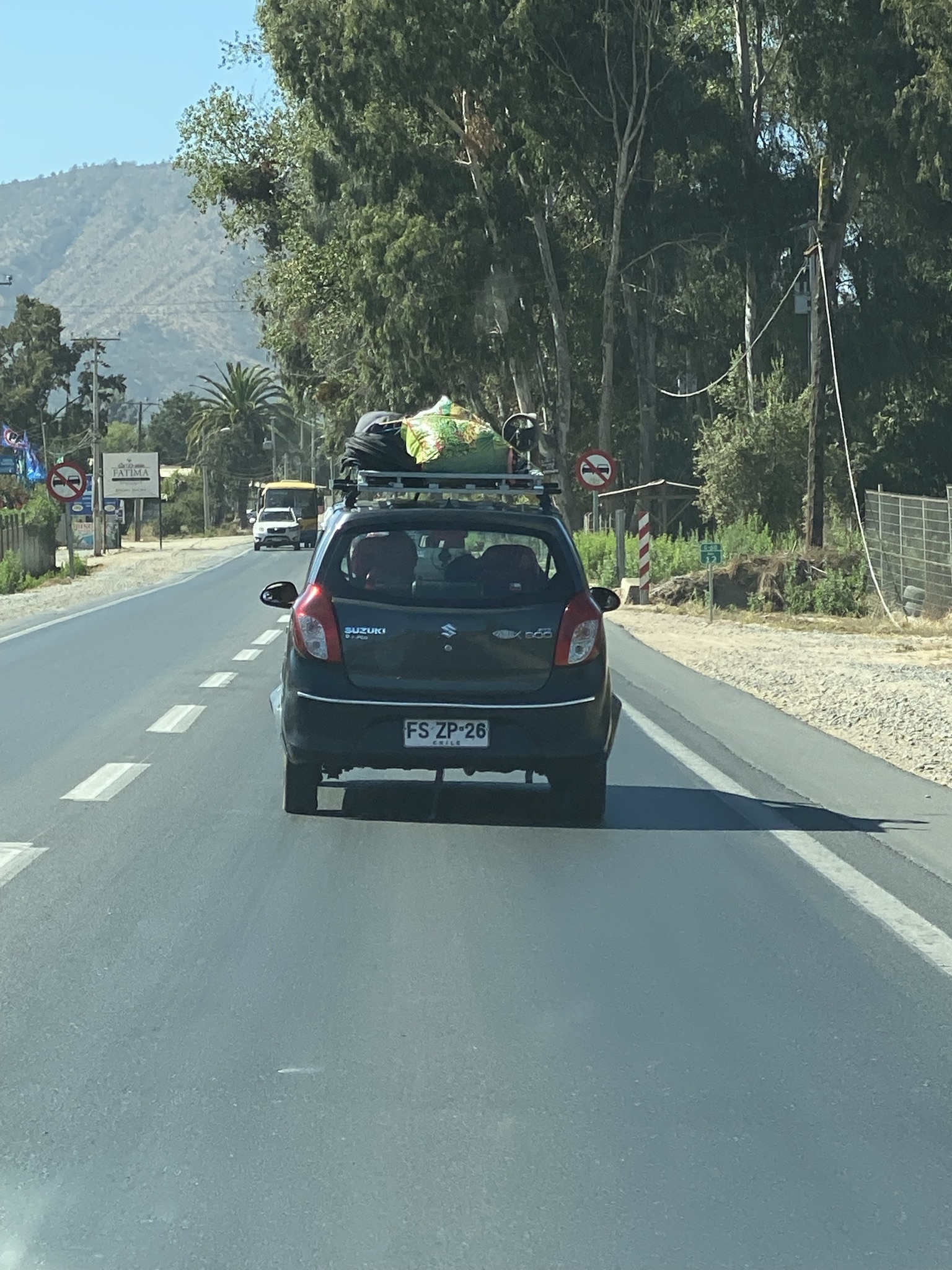 Driving in Chile is a cross between a NASCAR race with cars and motorcycles weaving in and out of traffic at breakneck speeds and a Drivers Ed simulator where cars pull out in front of you. At each toll booth, traffic piles up with long lines and people honking their horns. There is only one four-lane highway that runs from north to south, from one end of Chile to the other. This highway is filled with trucks loaded to the brim with produce, logs, and construction materials and families on summer vacation with luggage tied to the tops of their cars, all sharing the same highway with no concept of a fast and slow lane or a passing lane. It is an adventure, and we breathe a sigh of relief and utter a prayer of thanks every time we arrive safely back at our apartment in Santiago. No pictures could do these wild rides justice. We have to say that the roads are in great condition, and they are so clean.