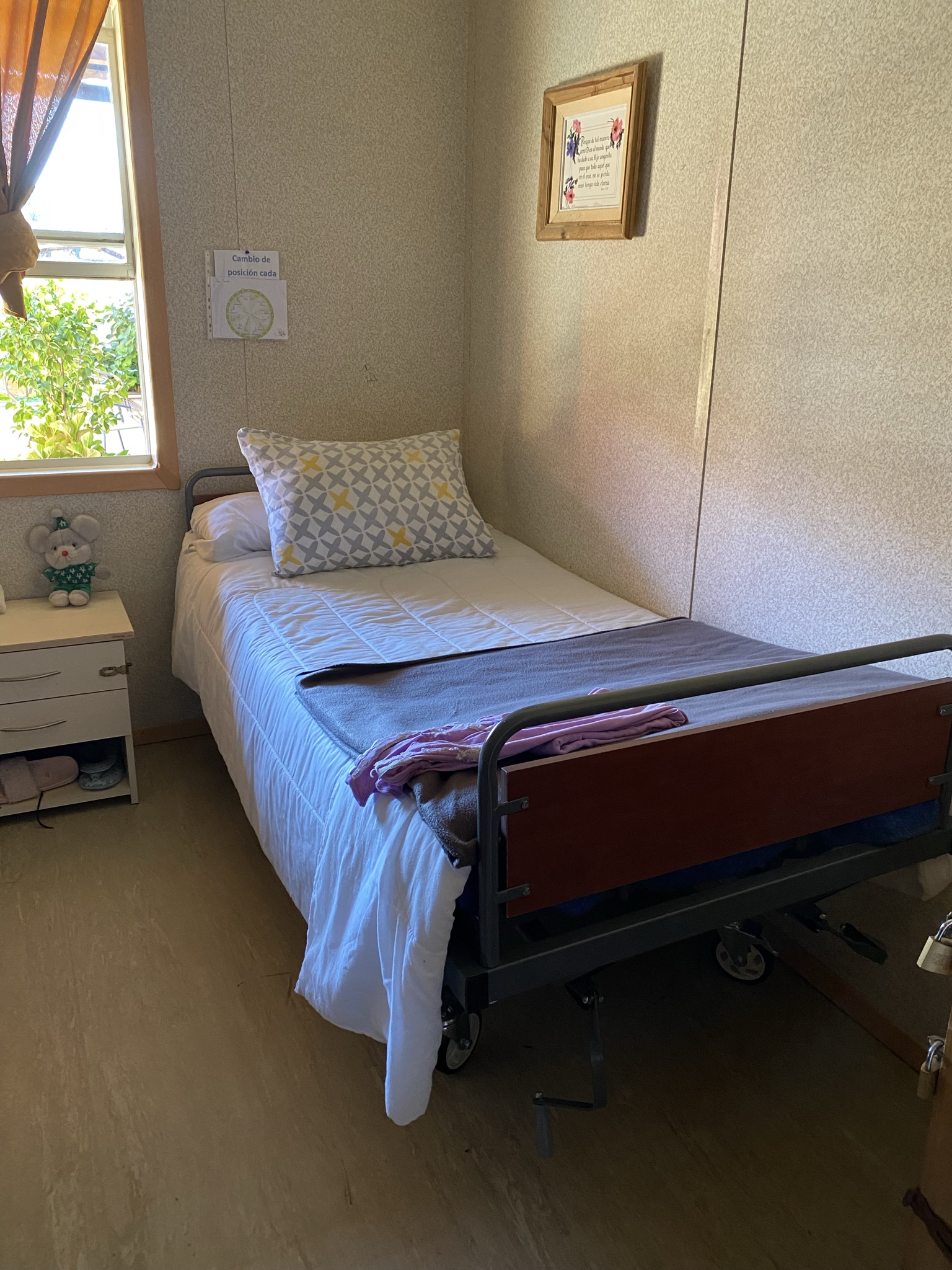 We drove four hours south to Curepto to an Entrega ceremony at Padre San Jose Cappell Hogar de Ancianos. This was our first project visit after we arrived in Chile so it will always hold a special place in our hearts. Long-term stay facilities for the elderly in Chile are established to welcome and care for vulnerable older people over 60 who do not have family support. There are 18 residents at Hogar Padre Jose Cappel, one being 100 years old. These residents need special care. Caretakers were getting by with only 2 stovetop burners, no ovens, unsanitary kitchen counters, worn-out washing machines, nonfunctioning dryers, and a handicapped wheelchair that was taped together. Several hospital beds no longer worked, and they had no lift to assist in changing nonmobile patients’ positions in bed. It was rewarding to see the happiness on the faces of the residents and the staff as they took us on a tour to see the donations.