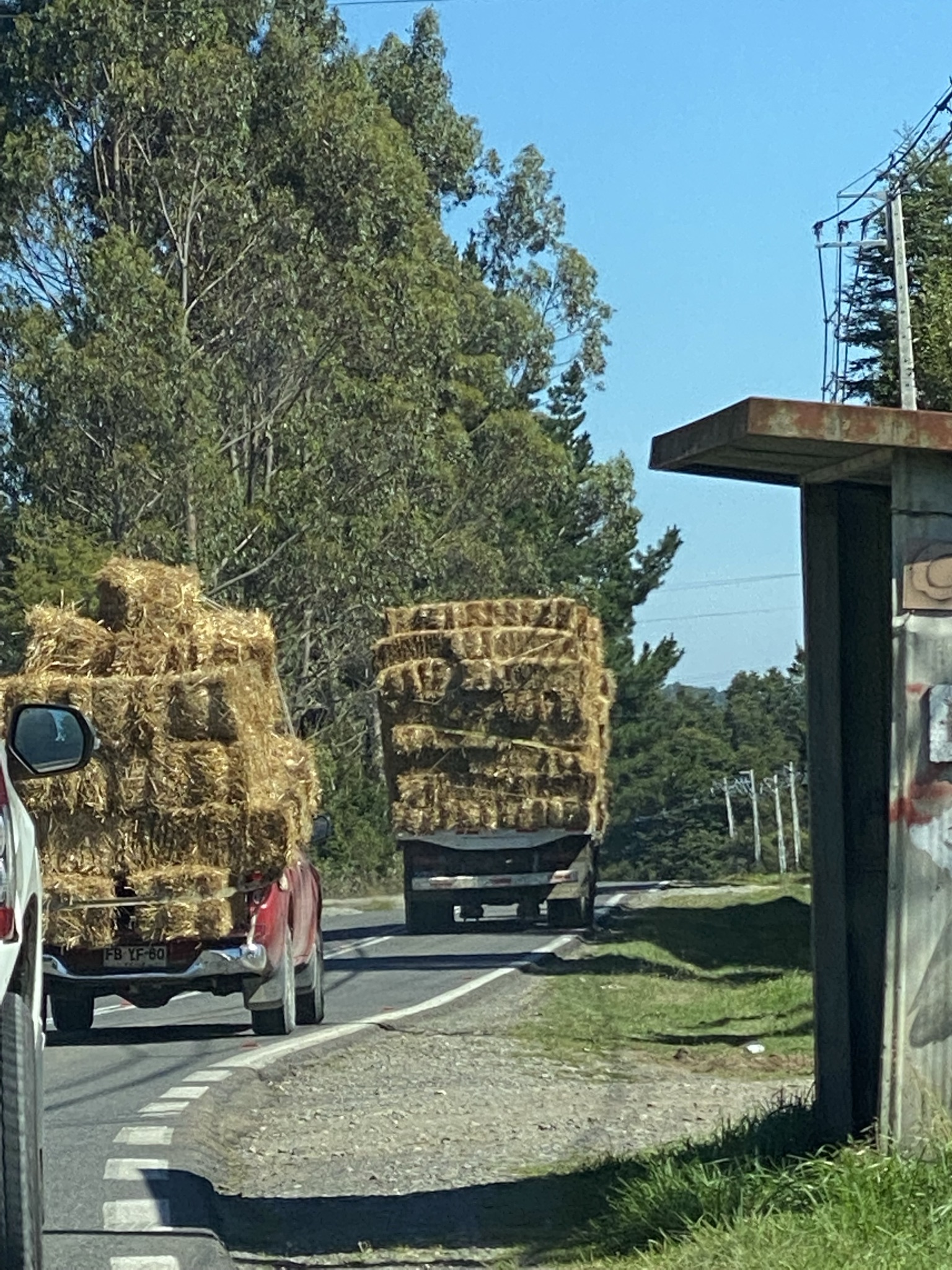 Hay trucks and cows grazing outside of Puerto Montt