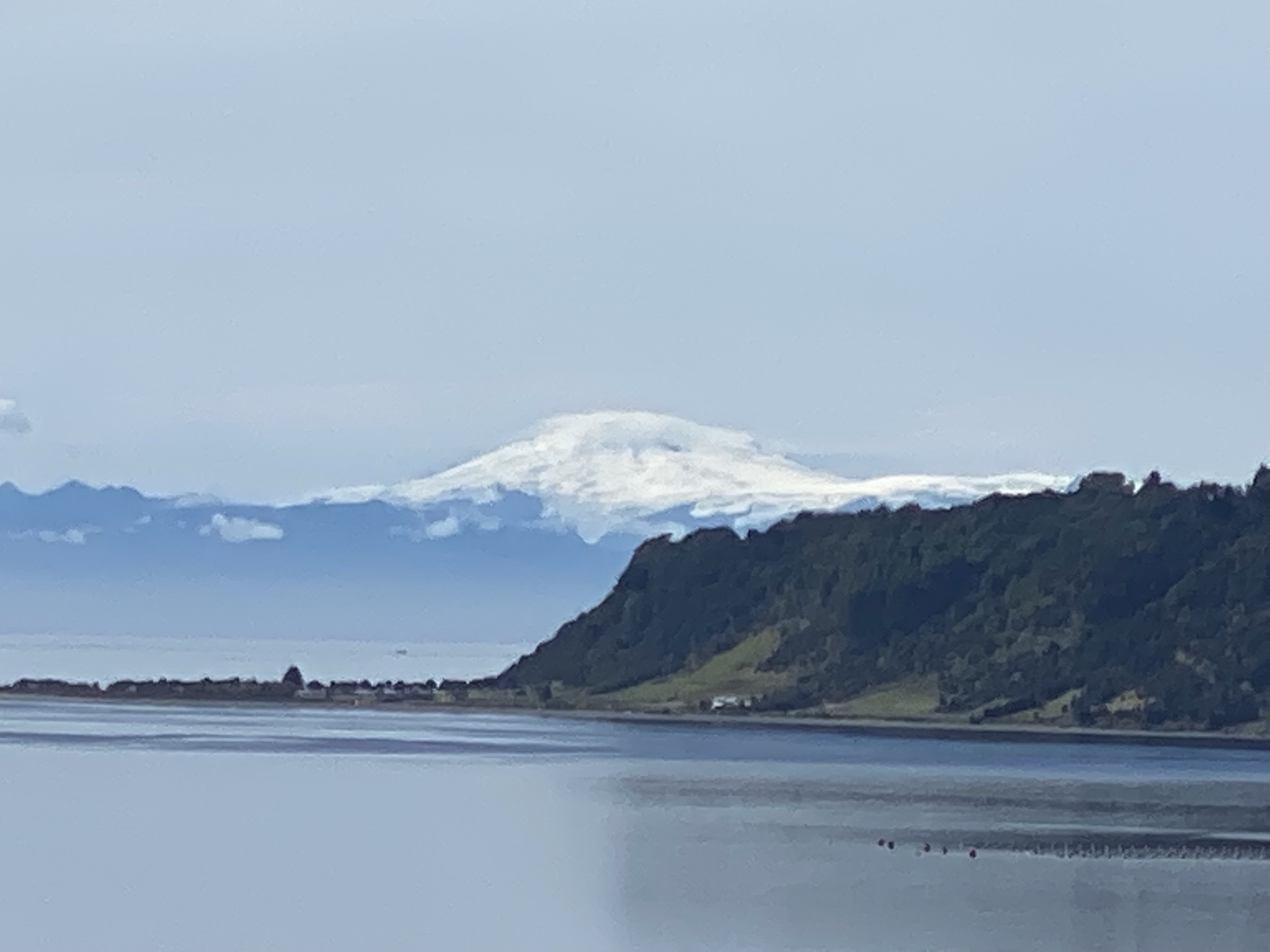 This school is located at the southern tip of Lemuy Island which required an airplane flight, two ferry crossings, and hours of driving to reach. We saw lots of cows and sheep grazing right on the side of the road. At one point the road followed a very narrow part of the island with water on both sides. We could see muscle traps in the water. The view of the Michimahuida volcano was stunning.