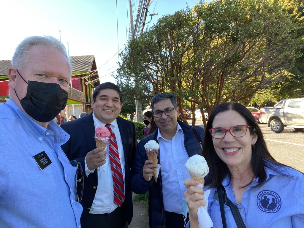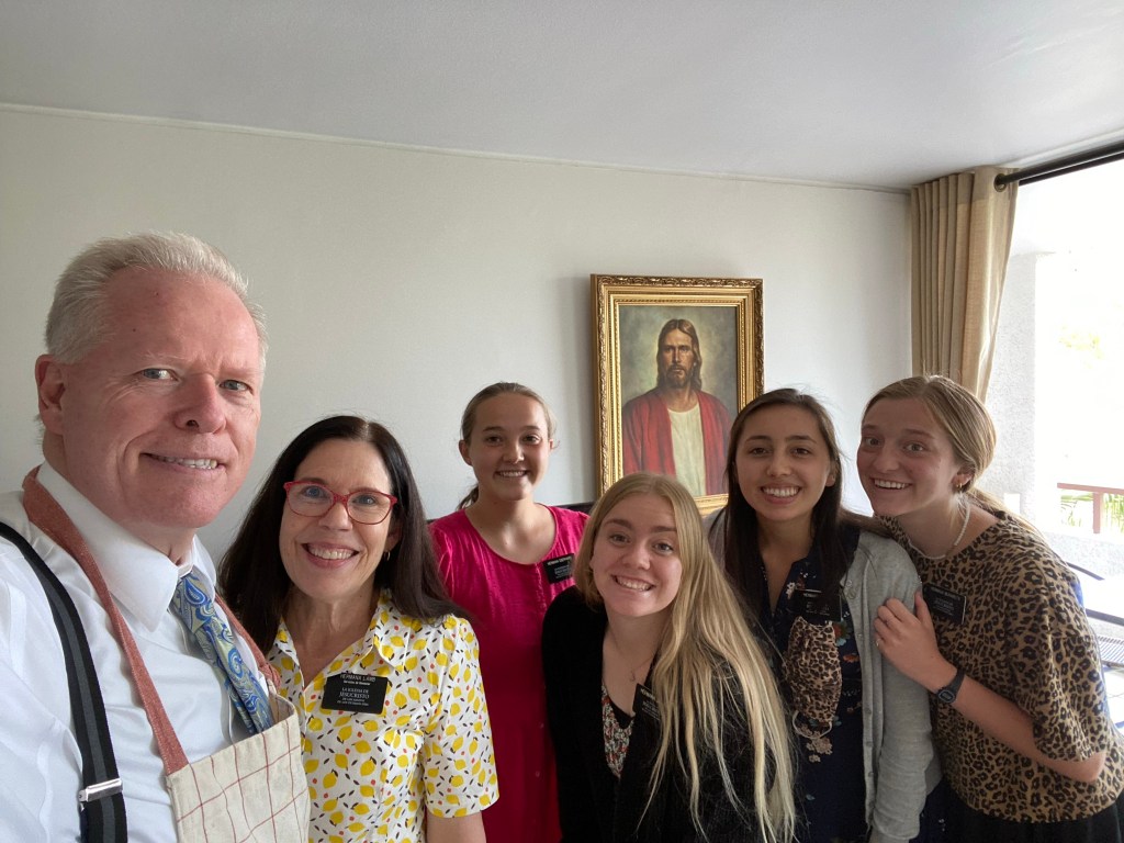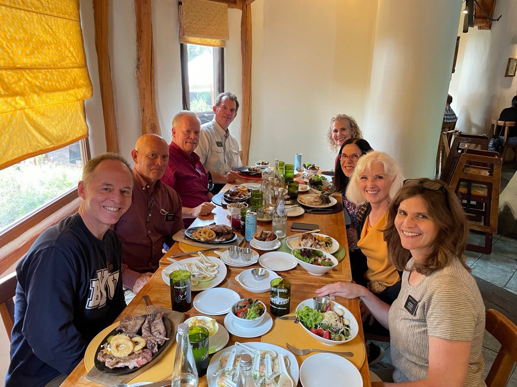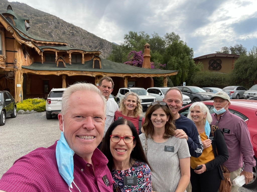 We spent Saturday with the three other senior couples in the Santiago East mission (Lindquists, Crocketts, and Gammons). We drove an hour up a canyon to San Jose de Maipo. This is a weekend getaway for locals from Santiago. We had lunch at a charming restaurant called Casa Bosque. Élder and Sister Crockett return home in two weeks. We will miss them!