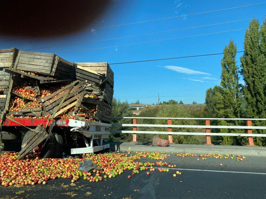 A taco in Chile is a traffic jam and often in our travels, we are caught behind them. On this trip, we managed to get stuck behind a very long “taco” due to an apple truck accident.