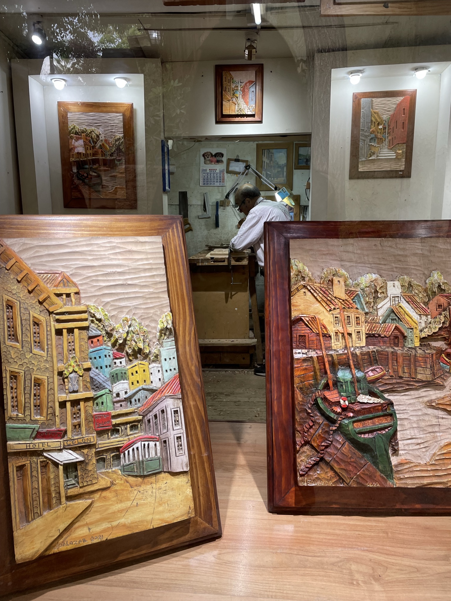 We ordered a nativity from a local ceramicist before Christmas and were able to pick it up yesterday. While in the market we watched a craftsman carving wood pictures.