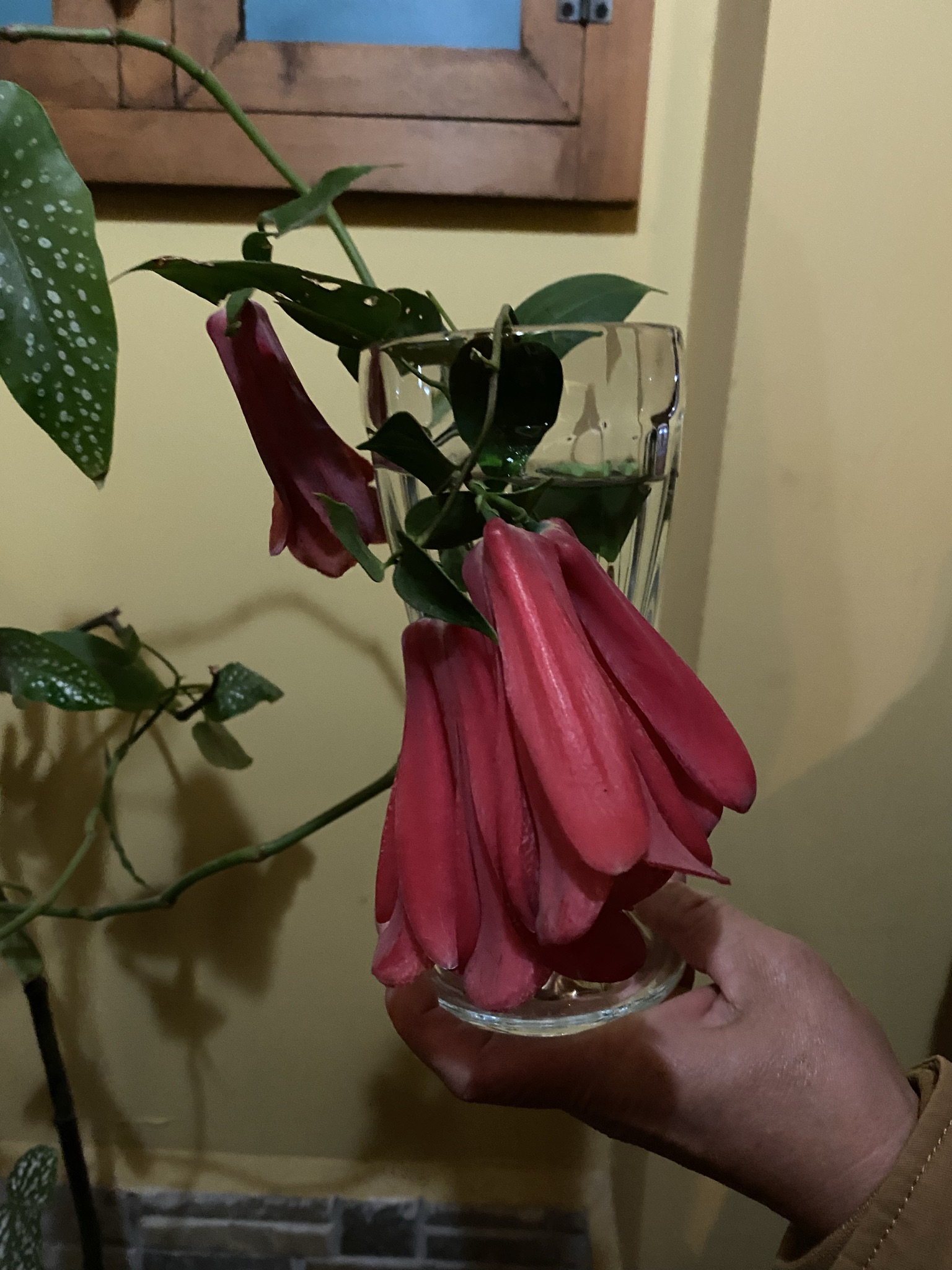 Then an hour drive back south to Parral where we went to President Sotomayor’s home to meet his wife. She showed us her beautiful Chilean Bellflower, the national flower of Chile.