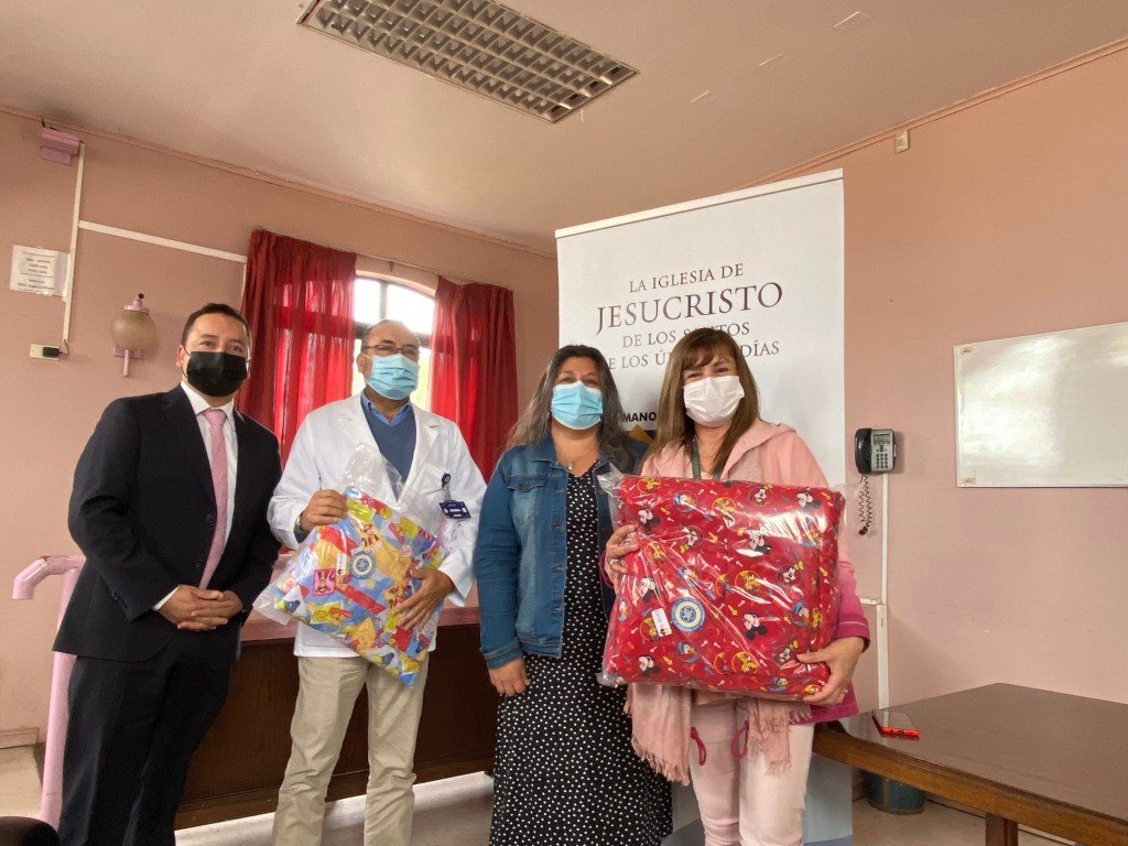 The next morning, we left at 7:30 am for Quilpúe, an hour and a half drive northeast, for a ceremony at Hospital Quilpúe. The donation of a dermatome will improve care for those who have been severely burned and those who have severe wounds that require skin harvesting and transplant. The rest of the donated items were for the pediatric unit. This pediatric unit has 9 beds and 10 cribs and cares for children from 28 days to 14 years of age. When a child or adolescent is hospitalized and find themselves in a totally new environment they may experience physical discomfort, fear, or anxiety. To help them adapt to their new surrounding and situation, a pleasant and welcoming environment is necessary. Due to budget restrictions, the hospital has not been able to make its pediatric unit comfortable. TVs will provide a means to occupy some of the time of these children and provide a distraction from their pain. Lap tables provide the surface necessary to do schoolwork with the guidance of the in-house teacher. The bottle warmers were much appreciated. Local Relief Society sisters made crib sheets and covers for the infant beds.