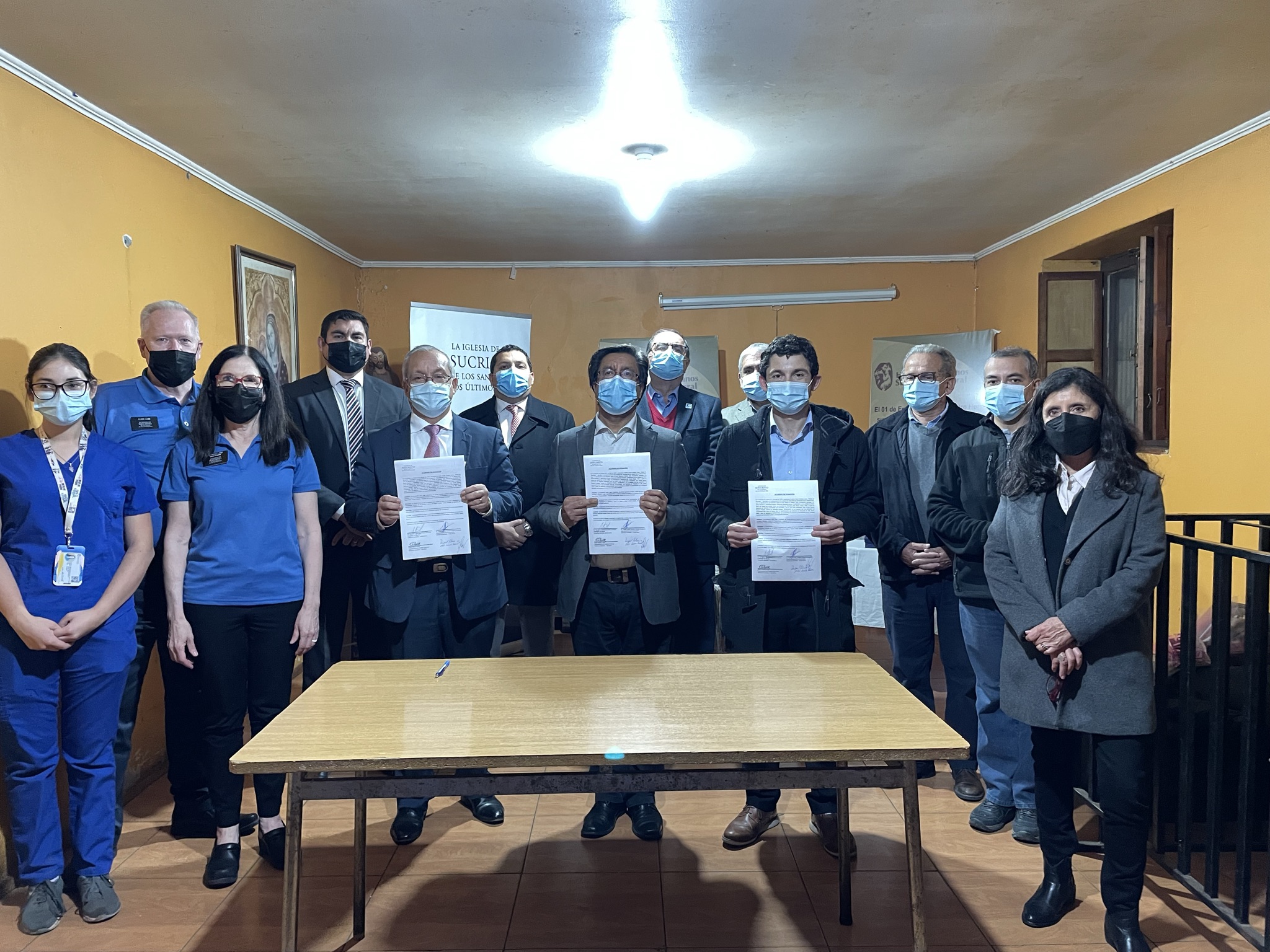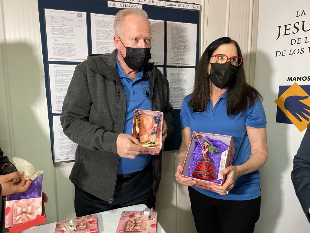 At 3:30 we met President Sotomayor at Sor Teresa de Calcuta hogar de ancianos. A group of volunteers came together to form this organization to welcome and care for vulnerable older people who do not have family support. Some have been abandoned. Caretakers wish to give them dignity in the twilight of their lives by offering a space for them to live, in hopes that they will achieve spiritual and physical well-being. There are currently 38 residents with an average age of 87 years. A large percentage are severely physically dependent and do not have adequate beds for their condition. The donation of 15 clinical beds has been an important help in caring for these elderly people and in fostering a family environment. We had a lovely ceremony where they presented us with handmade dolls in traditional costumes, made from horsehair.