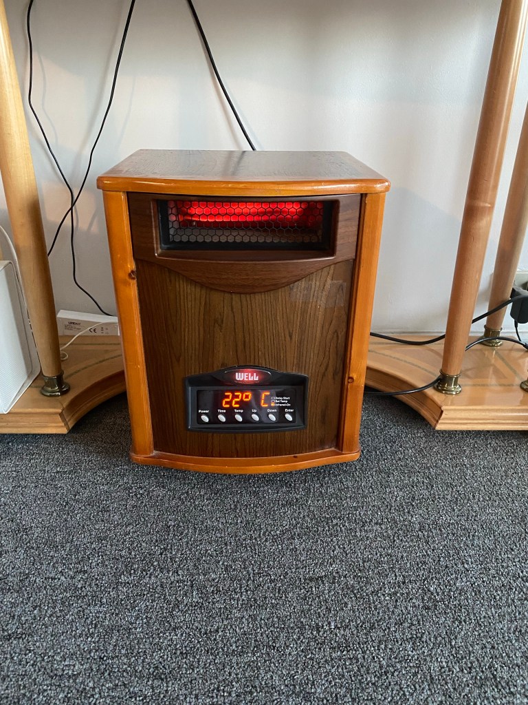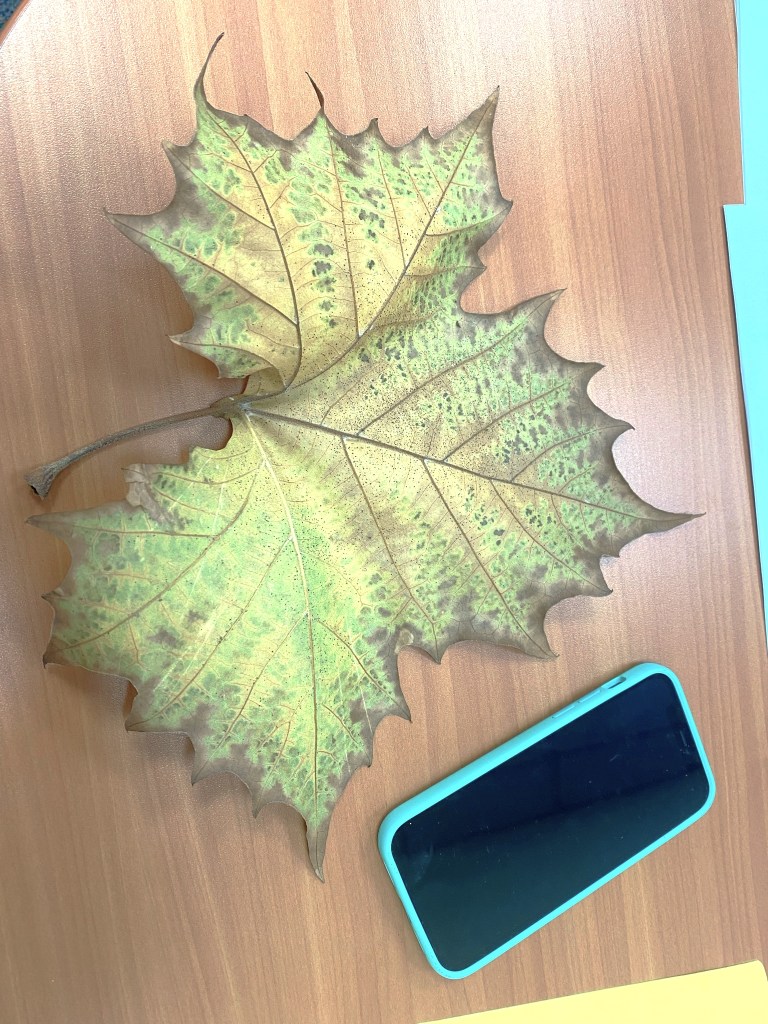 These autumn pictures were taken from our apartment balcony. We found GIANT fall leaves on one of our walks! We turned on our space heater this week. Without central heat, we curl up on the couch in front of it to eat dinner and watch TV in the evenings.