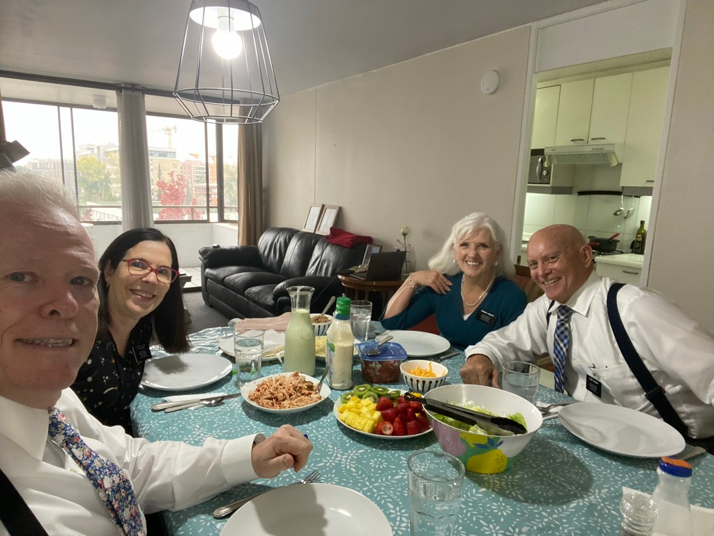 One thing we love about the Chilean culture is the warmth and love expressed by the people. A typical greeting (even with COVID masks) is an air kiss on each cheek and a simultaneous hug. After we meet people in person their emails and text messages often begin with Muchos Saludos (many greetings) and end with abrazos (hugs). All over the world saints in our church greet each other warmly before church begins but here it is a flurry of hugs and animated welcome. One thing that stands out to us is the interaction between the teenagers and adults in our church congregation. The teenagers hug and greet the adults with affection. It is wonderful to witness close relationships. Another observation- in our seven months in Chile we have not seen a single stressed impatient parent. Not even with tired children in the airport. They seem to cherish their children and care for them tenderly. They hold hands as they walk them to and from school; parents carrying their backpacks. There is an overall feeling of love and warmth between all people but especially children and adults. Another one of our favorite sayings is ‘super bien’. Their enthusiasm for life is contagious.