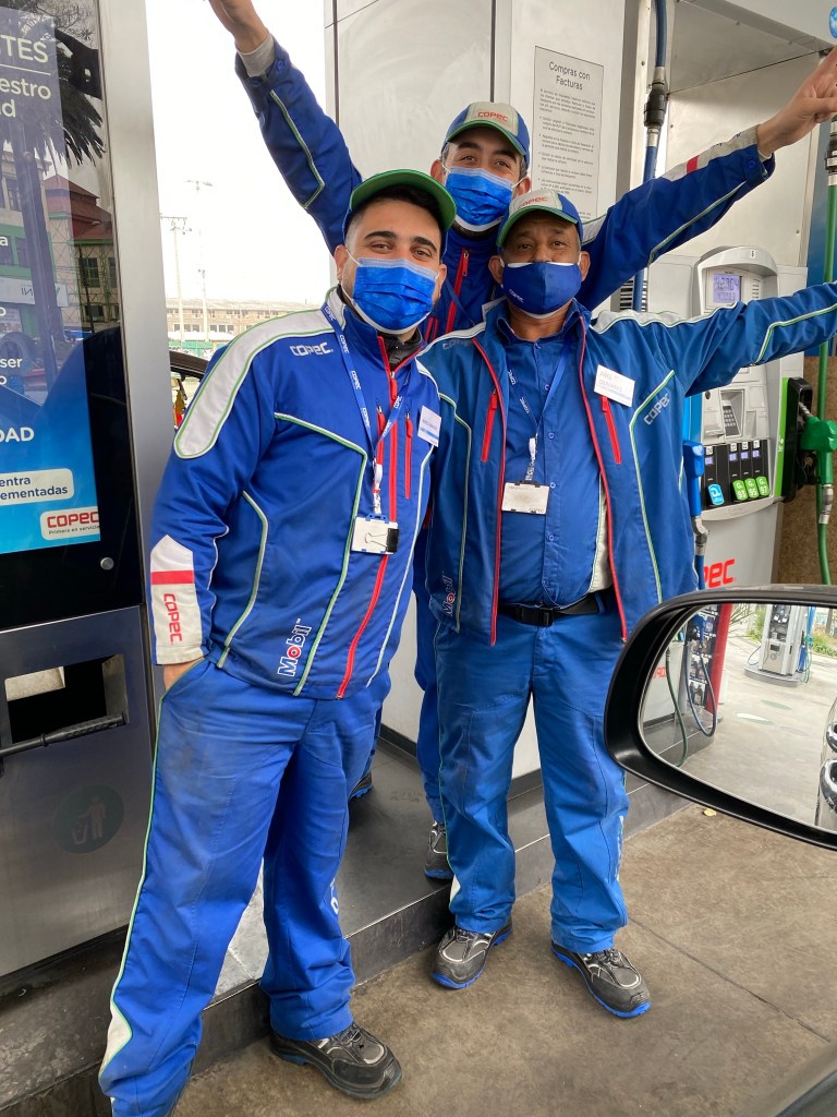 Does this bring back memories? Still a thing in Chile, gas station attendants all dressed in company uniforms. WE LOVE IT!!!