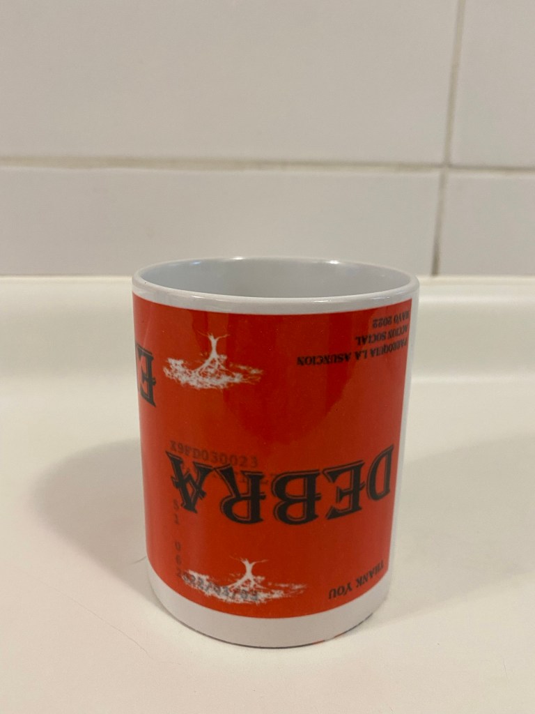 We had another memorable visit with our friends at Acción Social witnessing their community workshops in action. Our dear Catholic friends gave us the first mug produced from one of the donated items. The fact that it is upside down makes it all the more precious to us!