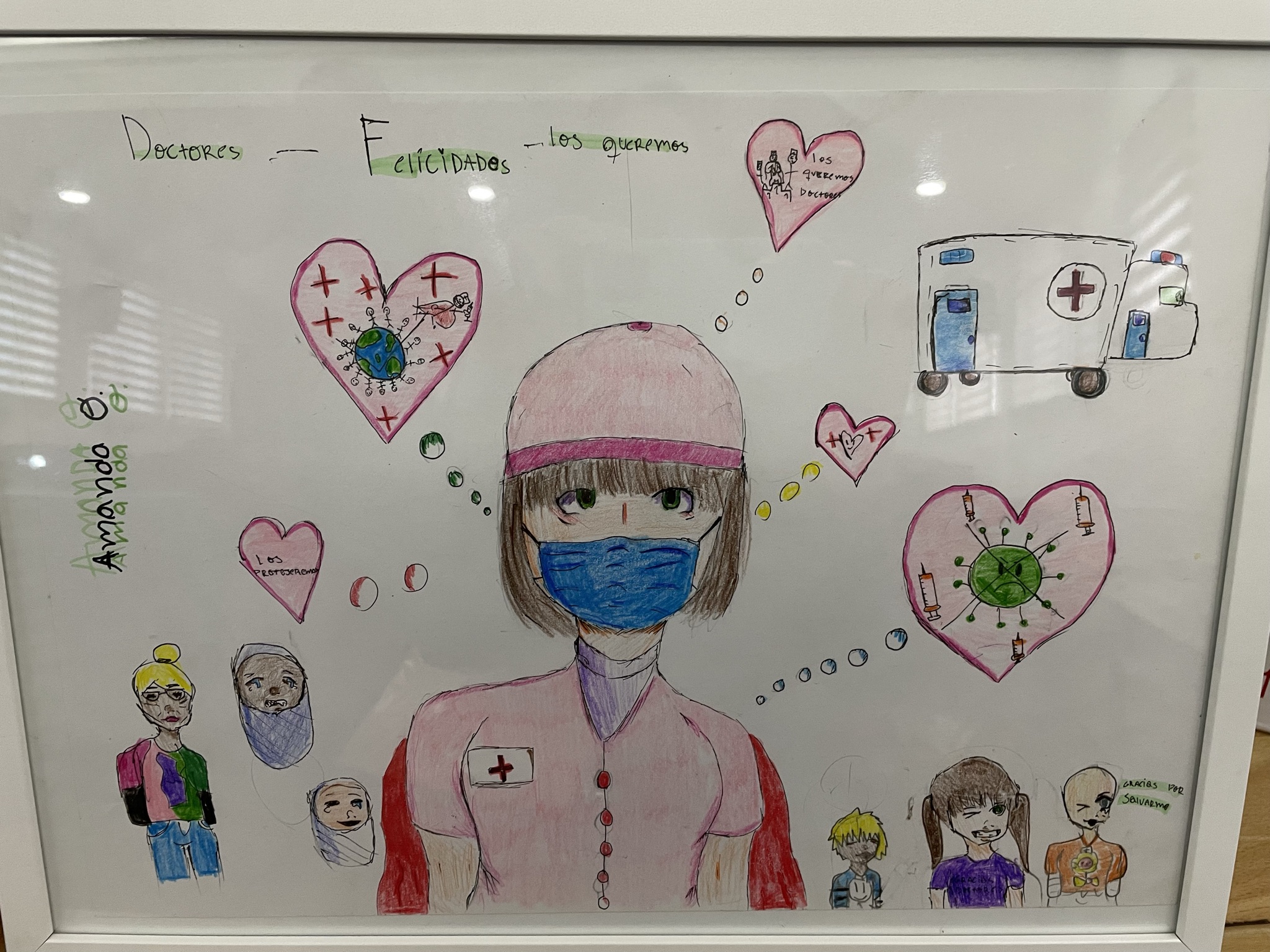 The youth in our local church congregation drew and framed pictures for the pediatric unit.