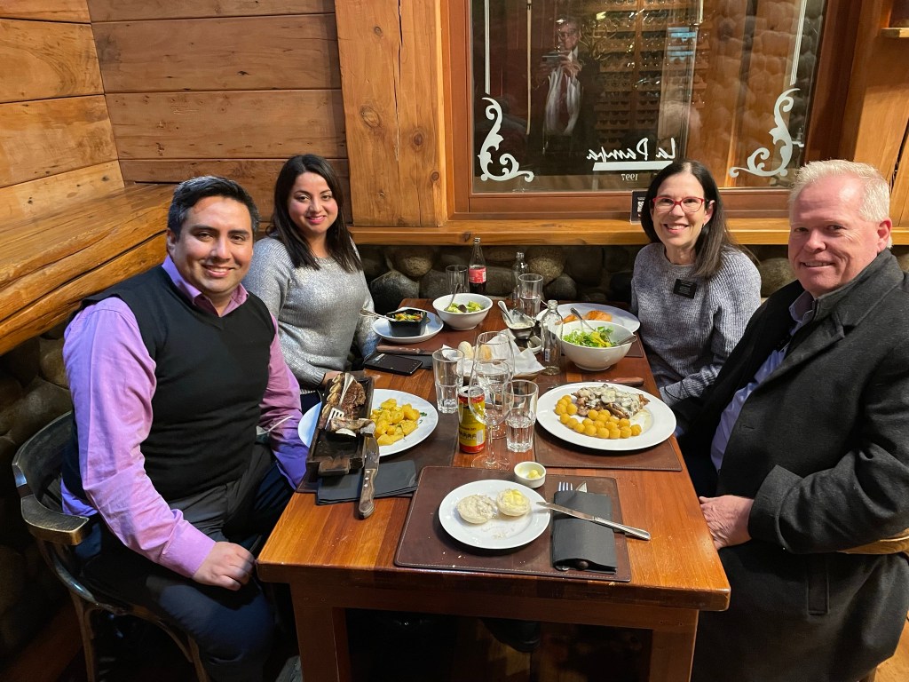 What a wonderous day and wonderful way to spend our 43rd wedding anniversary! We are missionary companions now, and forever companions for eternity. We are grateful for temple covenants that seal us together forever. In Chile, married couples are called ‘Matrimonio.’ We love being introduced as Matrimonio Lamb. We ate a delicious anniversary dinner at our favorite restaurant behind the Holiday Inn Express.