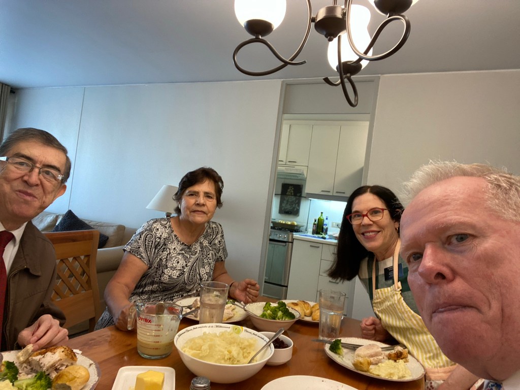 We had Matrimonio Ruiz at our home for dinner. They just arrived in Santiago from Mexico City. Élder Ruiz is a physician and serves as the medical advisor for missionaries in Chile. This is their seventh mission.