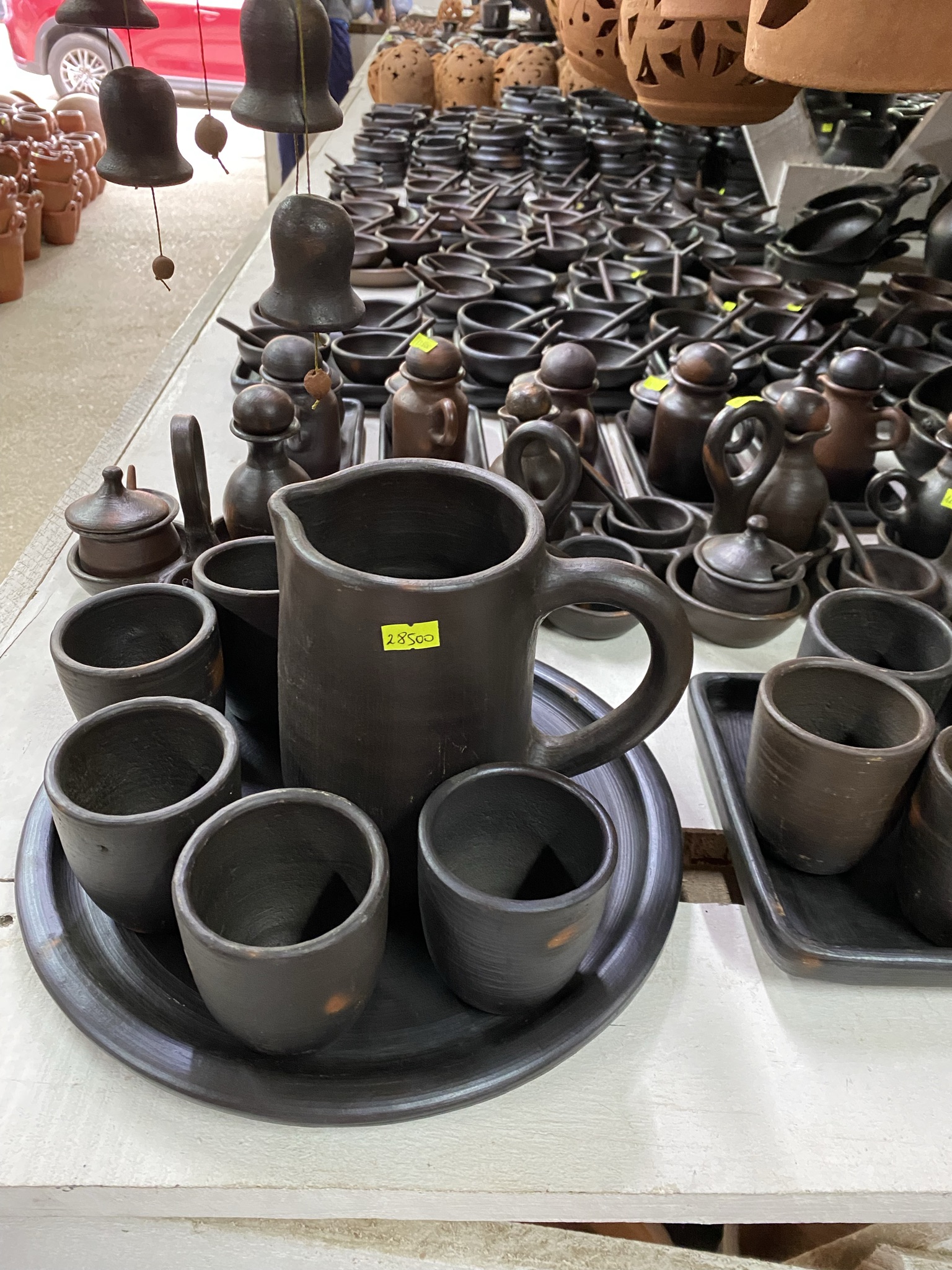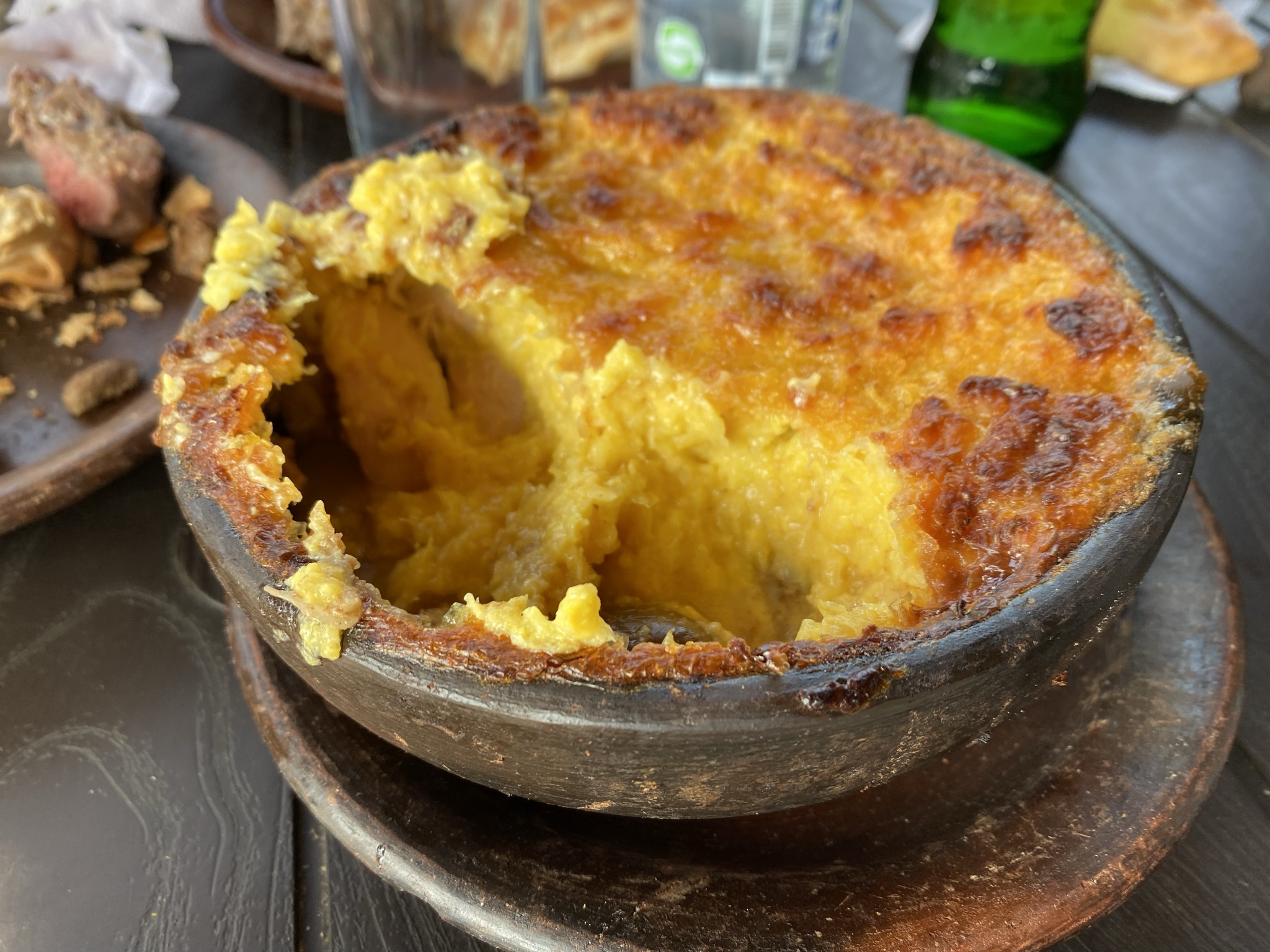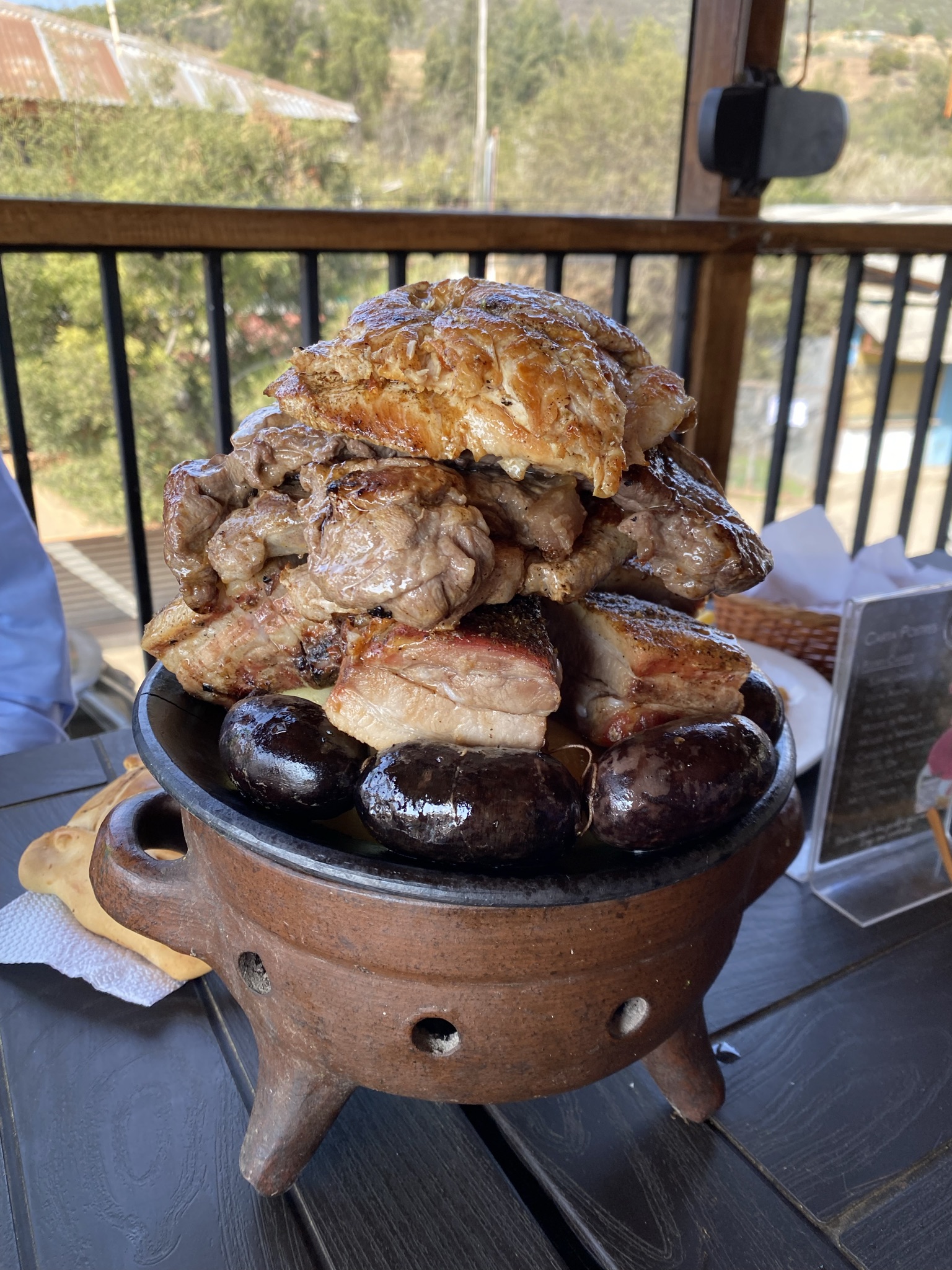 We stopped by Pomaire on our way home from San Pedro. Pomaire is a small town of pottery artisans. One of the most important characteristics of Chilean cuisine is its cooking vessels. This unglazed earthenware made from local clay is good at even heat distribution and can be used in the oven or directly over a flame or charcoal. It is said to impart a special flavor to food. We had a typical Chilean lunch there: empanadas, pastel de choclo (corn pie), bread served with pebre (salsa), and carne al parrilla (grilled meat). We may have purchased some Pomaireware. We will see how Elder Lamb gets it home in his suitcase when the time comes!