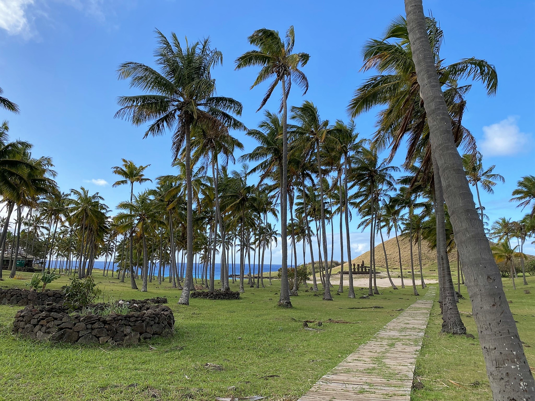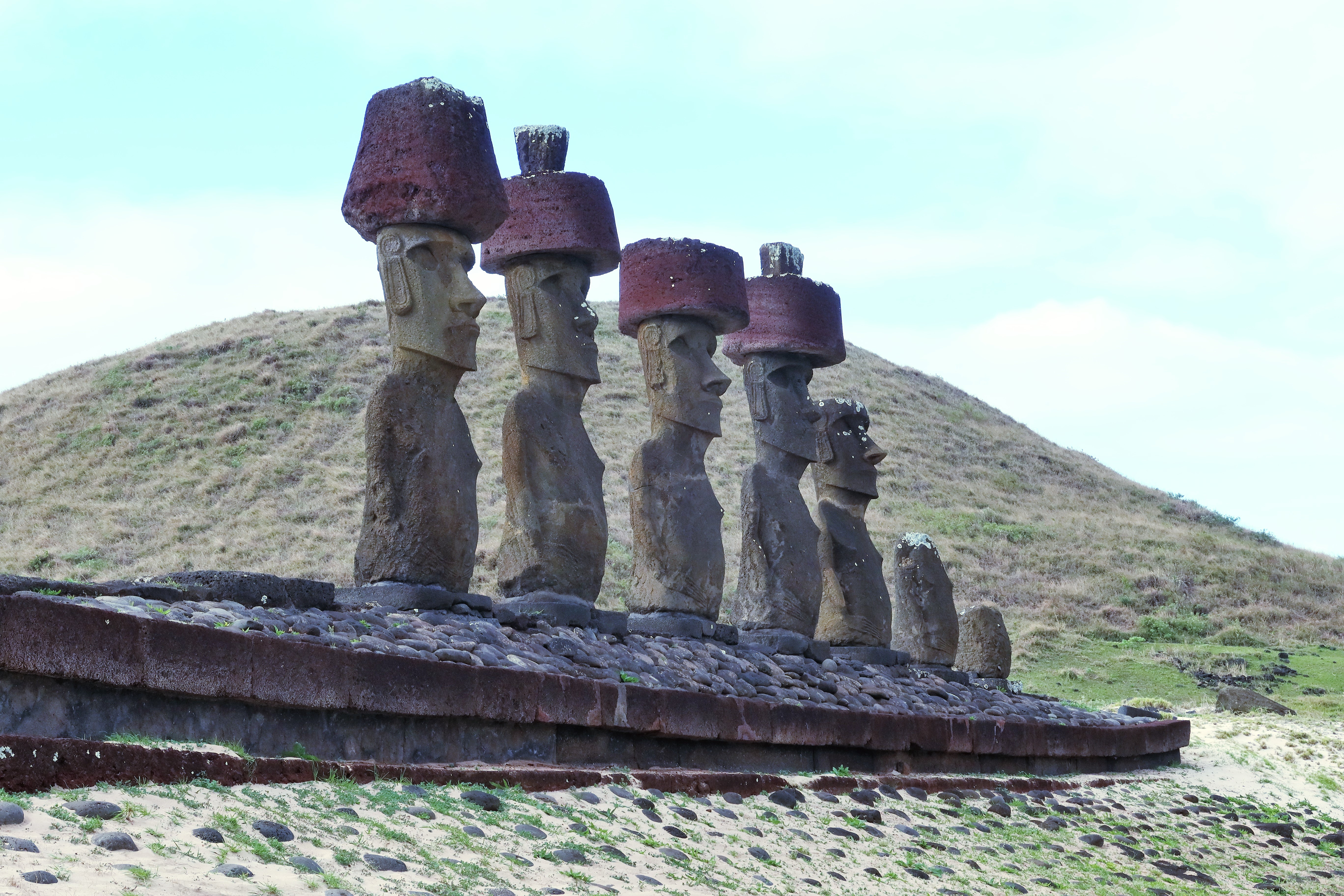 Ahu Nau Nau on Anakena Beach is a restored platform site with 7 moai.