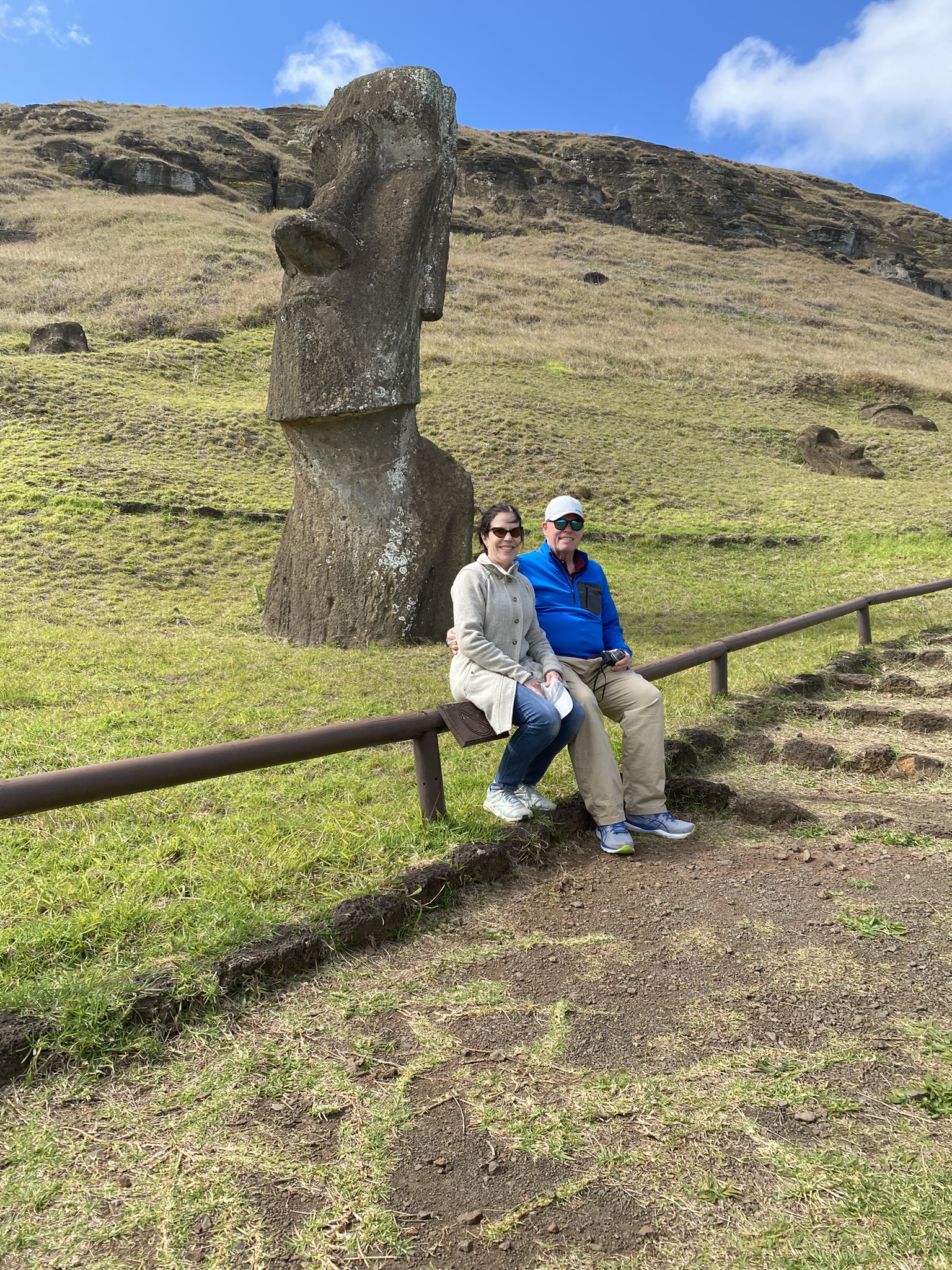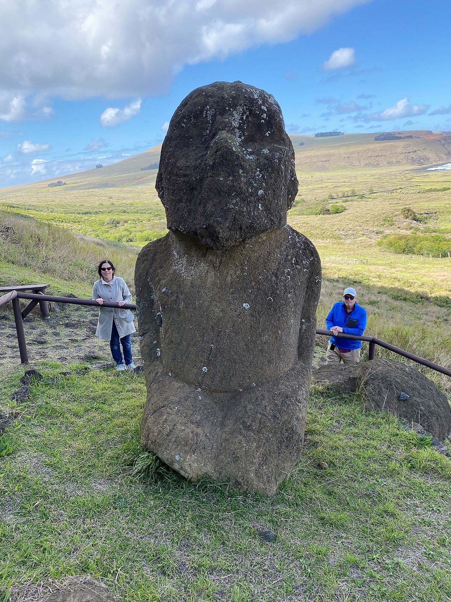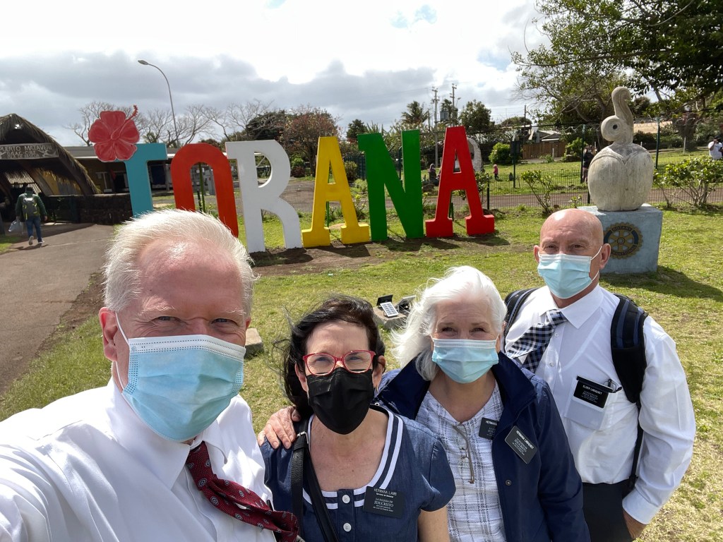 On Monday morning the Lambs and the Lindquist’s flew 2,300 miles west of Chile to the remote island of Rapa Nui. The five-hour flight brought us to the easternmost point of the Polynesian triangle. In Spanish it is called Isla de Pascua. It became a Chilean territory in 1888. It was named Easter Island by the Dutch explorer Jacob Roggeveen who first spied it on Easter Day 1722. It is the most remote inhabited place on earth and has more than 7,000 inhabitants today.