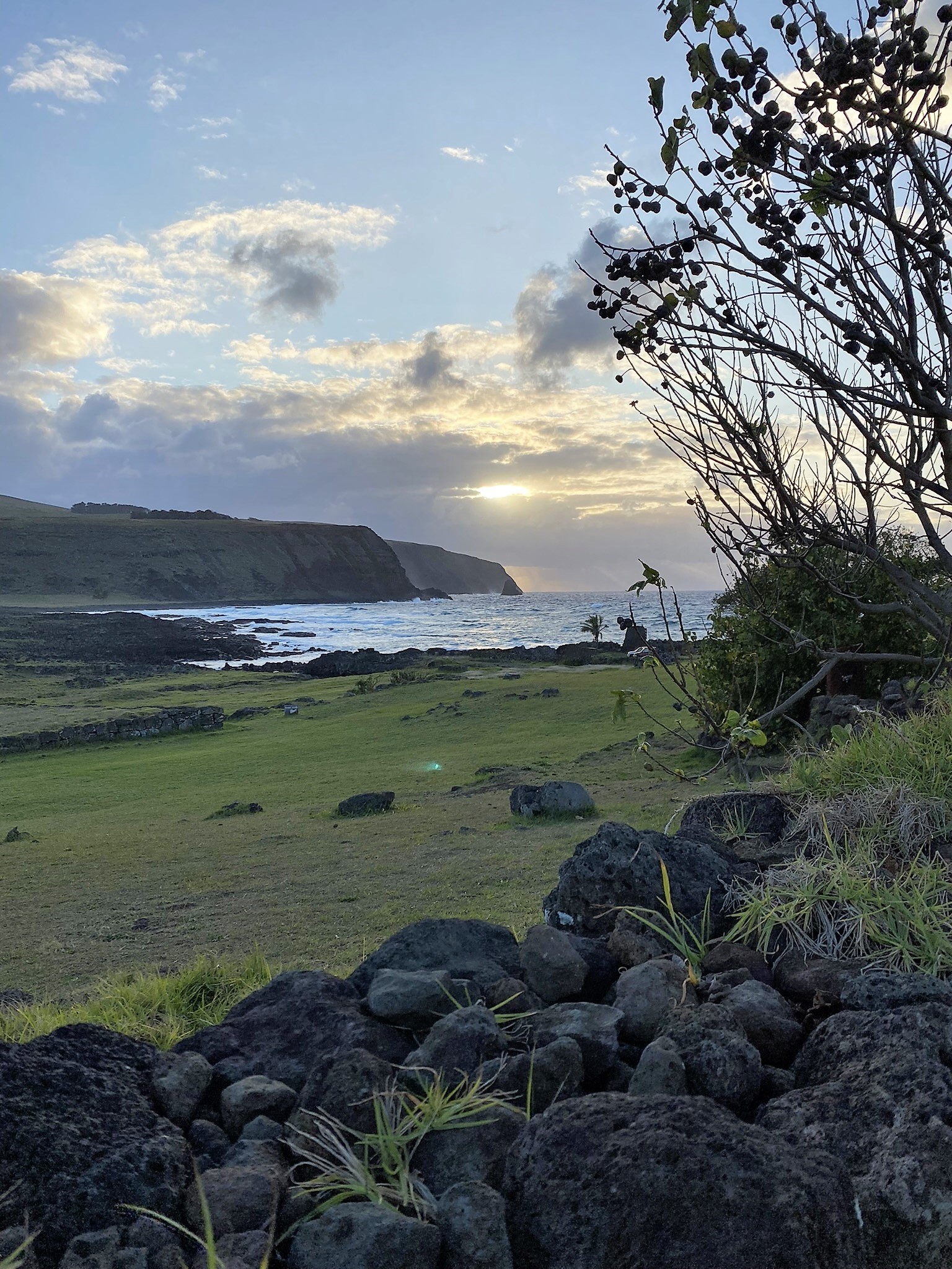 The Ahu Tahai archaeological site was restored in 1974 by American archaeologist William Mulloy. One of the Moai here has restored eyes. This ceremonial village has some restored homes and a ramp and dock made of lava rock. Watching the sunset at this location was a memorable moment.