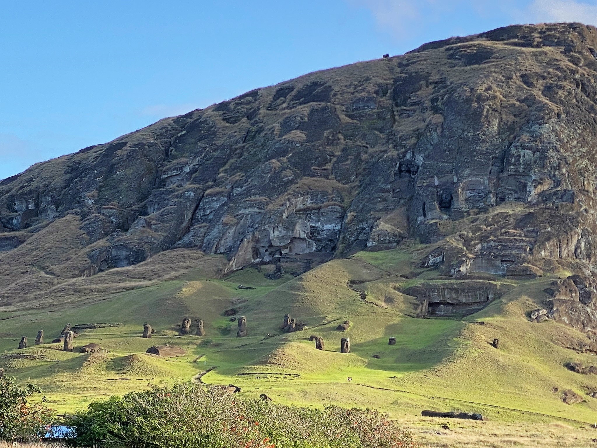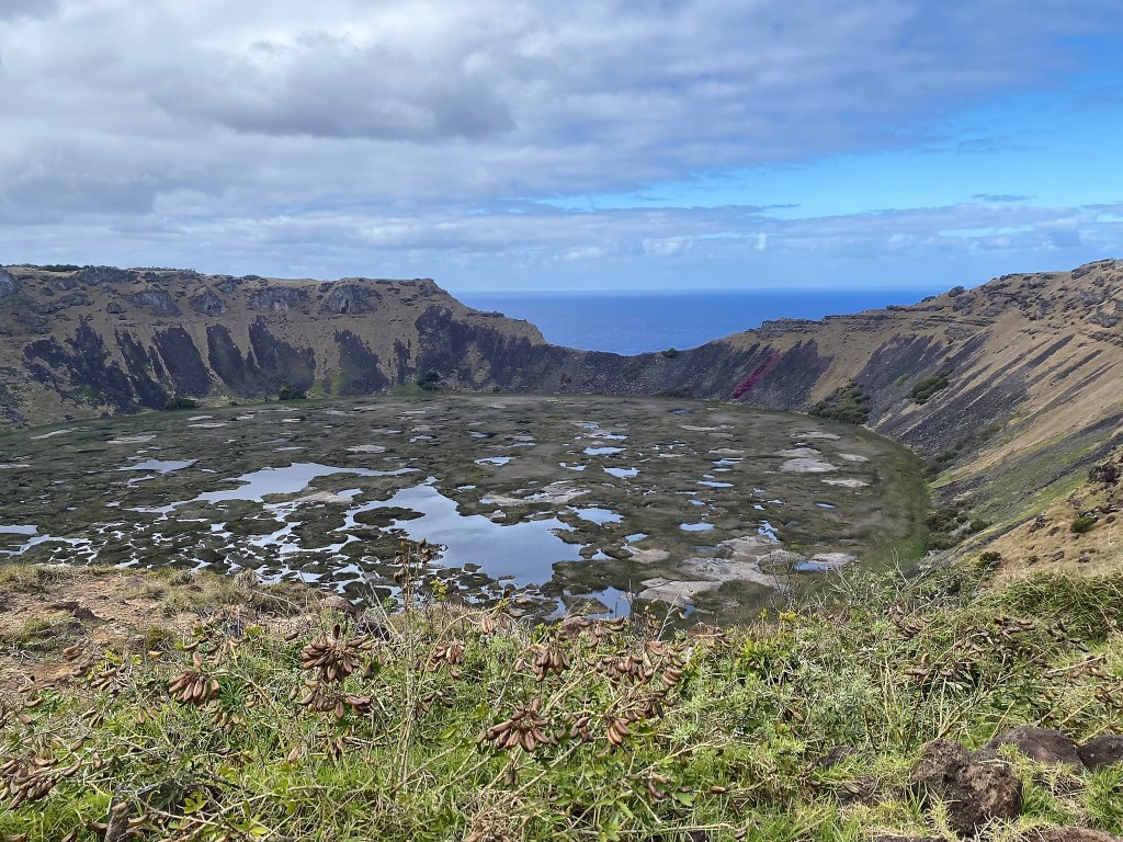 We walked around the rim of the Rano Kau Volcano and enjoyed the beautiful views. This amazing crater holds a beautiful freshwater lagoon.