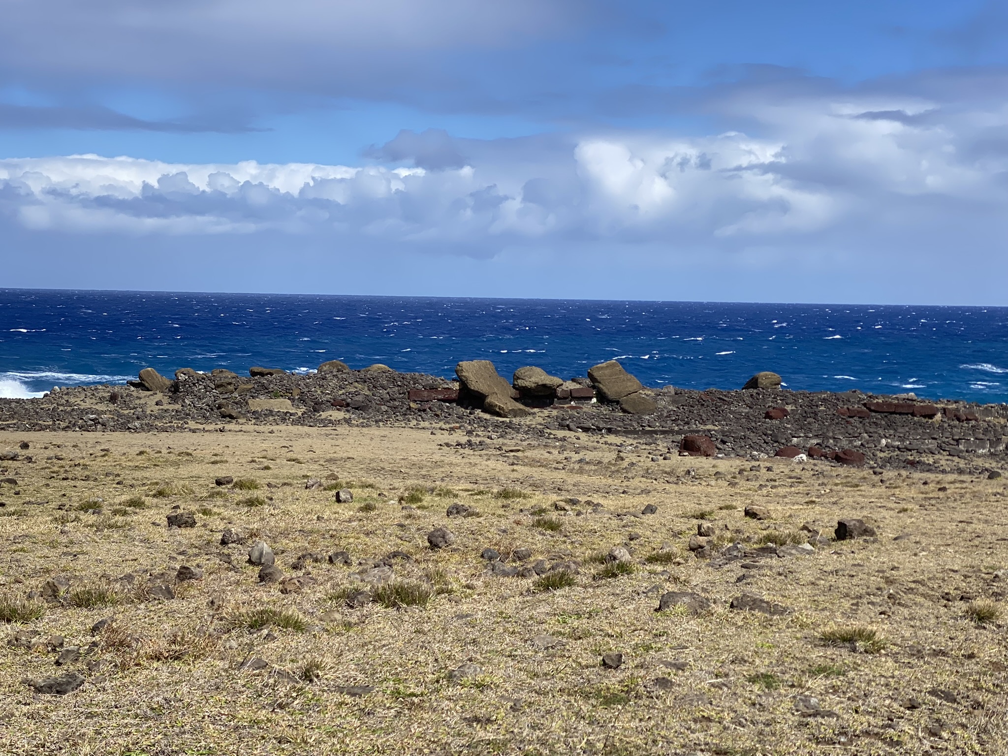 At Ahu Vinapu we found massive blocks of stone carved so intricately and pieced together so tightly that you can’t even insert a butter knife between them, and they are perfectly level.