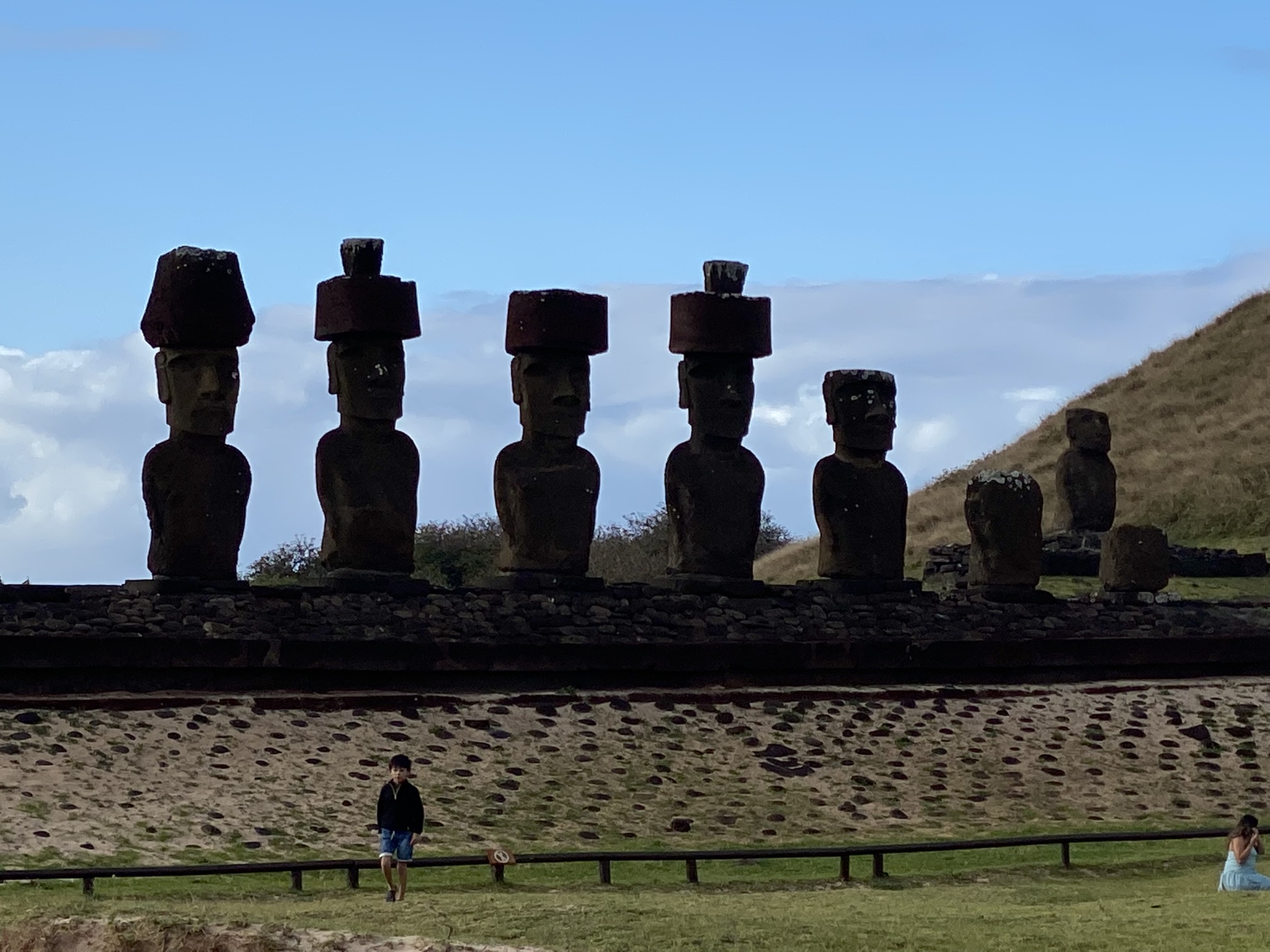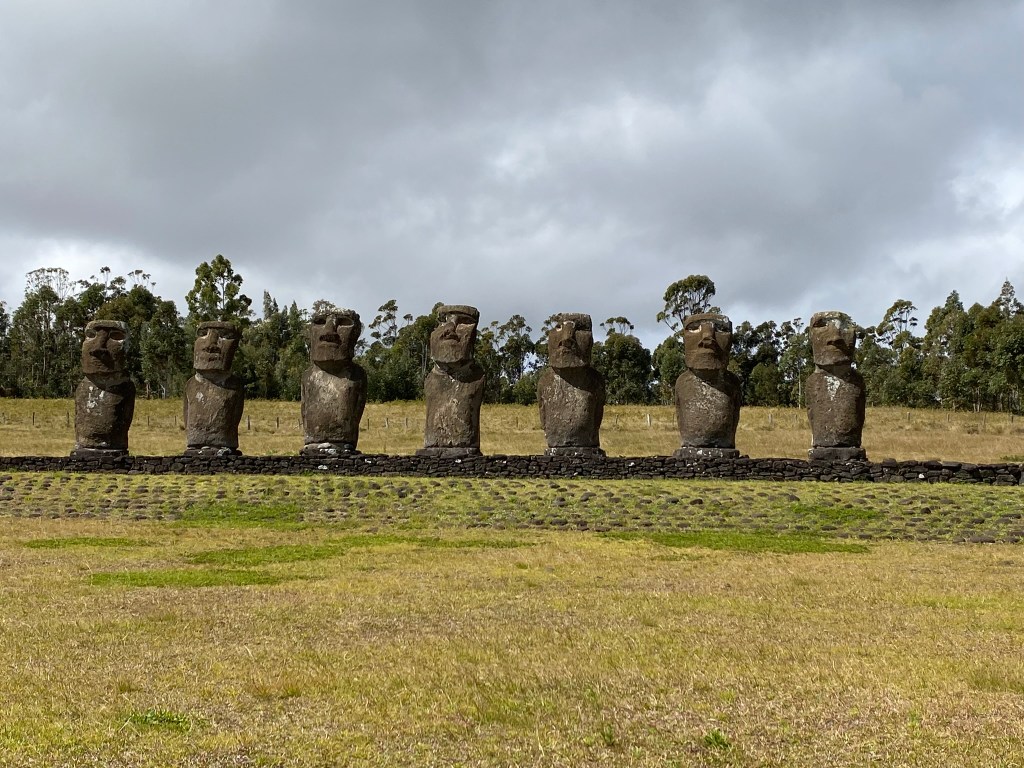 Ahu Akivi is the only place on the island where the Moai face the ocean rather than the village. They are looking to where they came from. The Moai face the point where the sun sets during equinox which also aligns with the moon with astronomical precision.