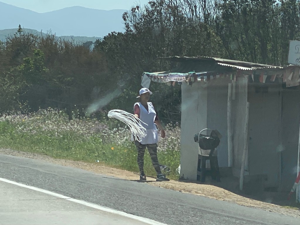 After two days in the office, we left Wednesday morning for a 7-hour drive north to the city of Vallenar for a delivery ceremony. The van was full of computers and carpentry equipment. Vendors wave white flags along the roadside to attract attention to their tiendas.