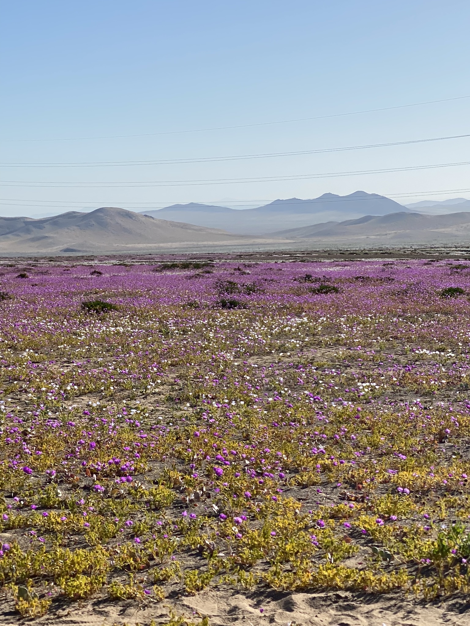 Since we were in the area, we took the opportunity to see one of nature’s wonders. Elder and Hermana Lindquist joined us since Sister Lindquist is such a flower lover. Once every five to seven years the driest place on the globe is transformed into a carpet of wildflowers. The Chilean Atacama Desert may not see a drop of rain for years. However, a true miracle happens when spring rainfalls resurrect the sleeping life and millions of wildflowers bloom. More than 200 flower species bloom in the Atacama Desert. The last time Chile saw this super bloom was 2015. We were truly blessed to witness this incredible natural wonder.