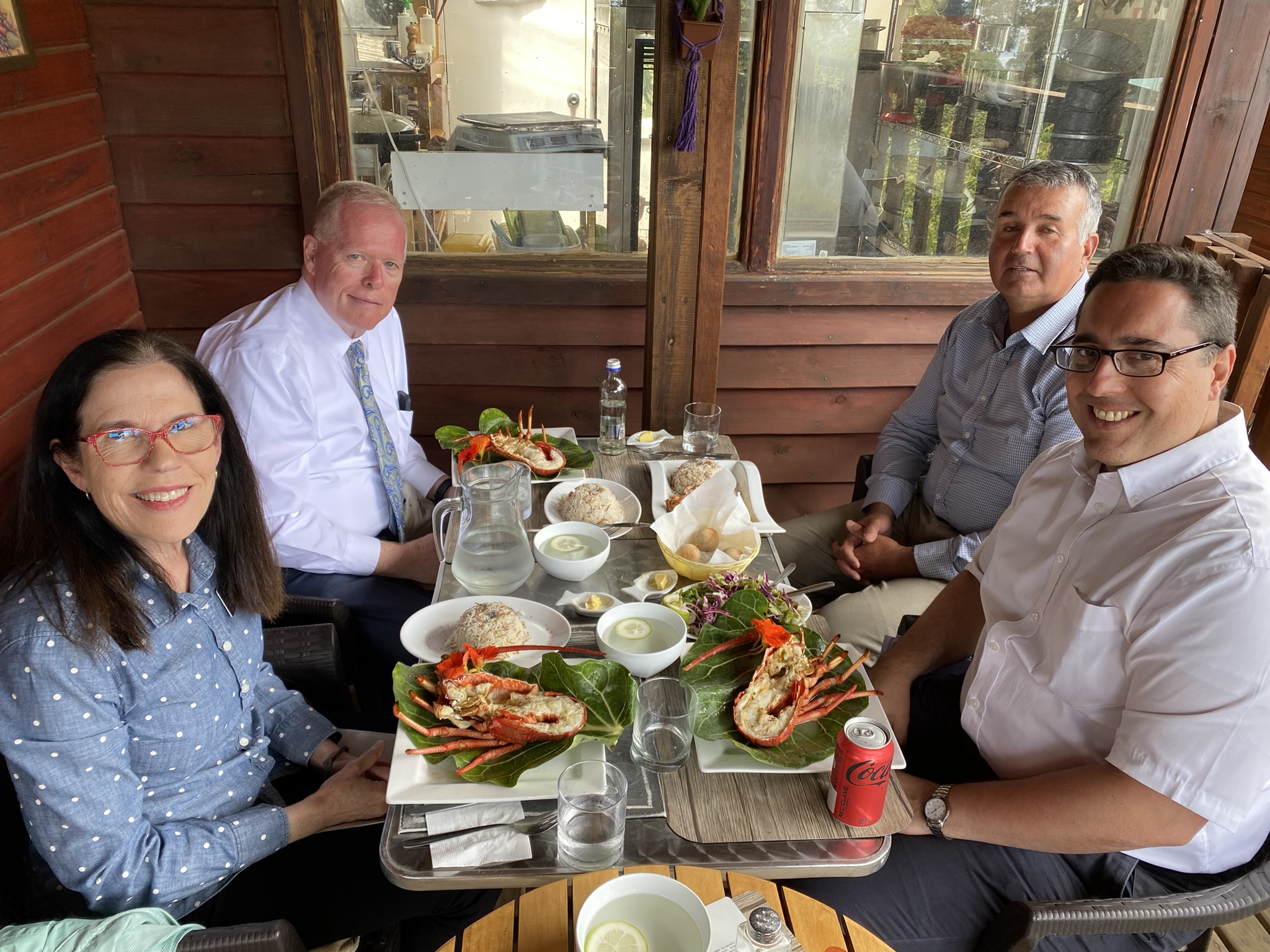 Our local church leader, branch president Eduardo Paredes, invited us to his home for dinner. He is a lobster fisherman. He insisted that we each eat a whole lobster while his wife and daughter ate other food. He quoted Alma 8:20 “I know that thou art holy (people) from God…Therefore, go with me into my house and I will impart unto thee of my food, and I know that thou wilt be a blessing unto me and my house.” Such a sweet, tender experience!