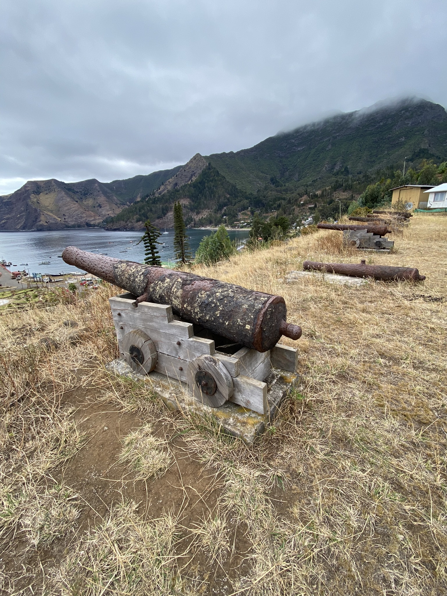 The town is built on a hill and has very little level terrain. It is a tranquil fishing village of 1500 people with stunning views. We walked to both edges of town. On one edge we saw shell impacts made by the Dresden during a naval battle in Cumberland Bay during the First World War. There is evidence on every block of the strategic location of the island during both World Wars.