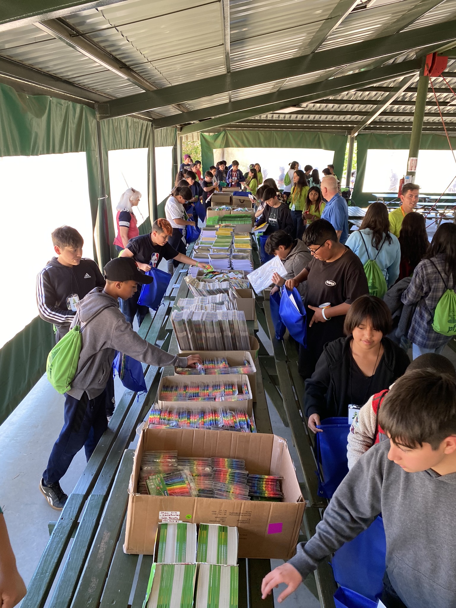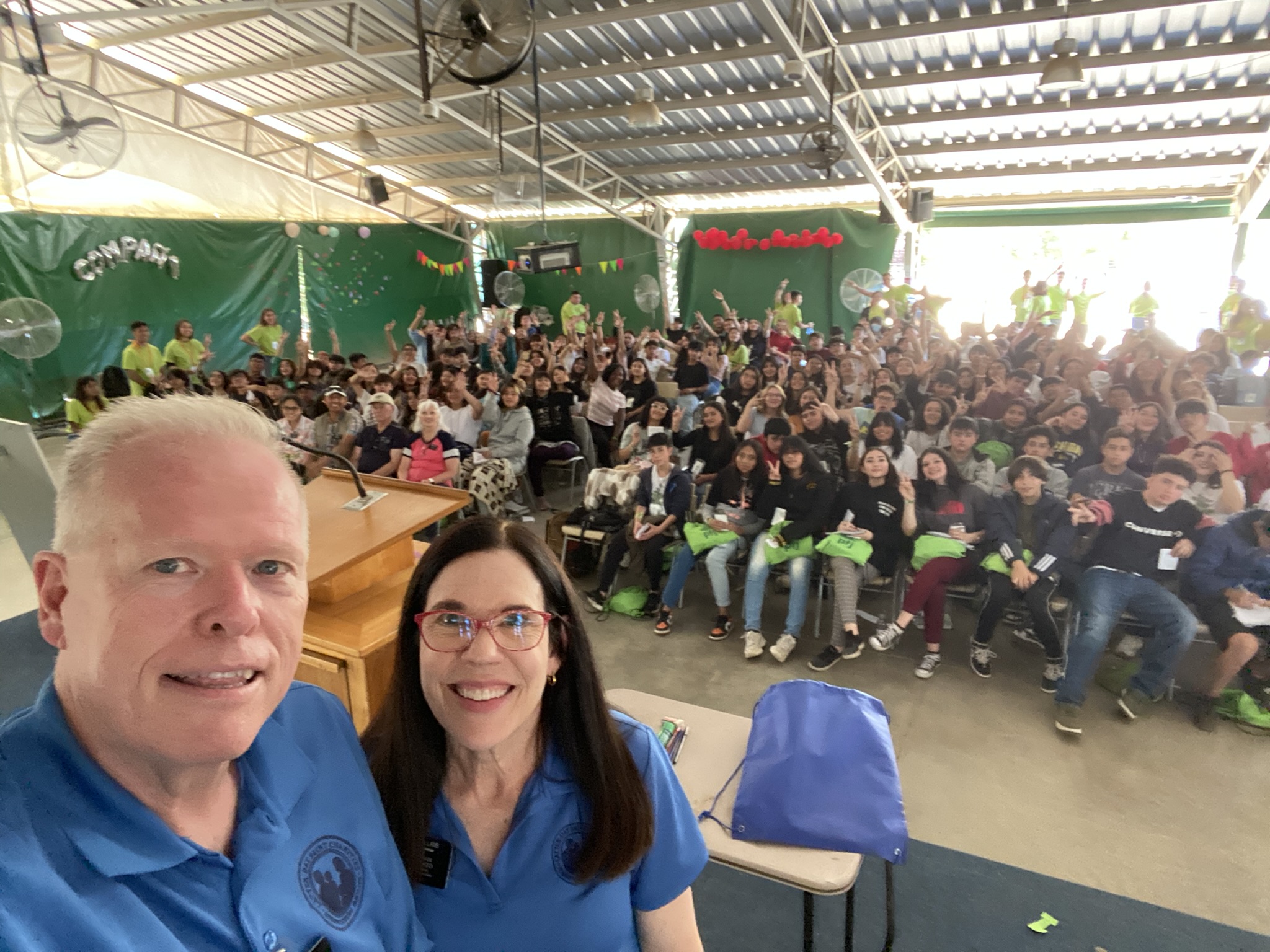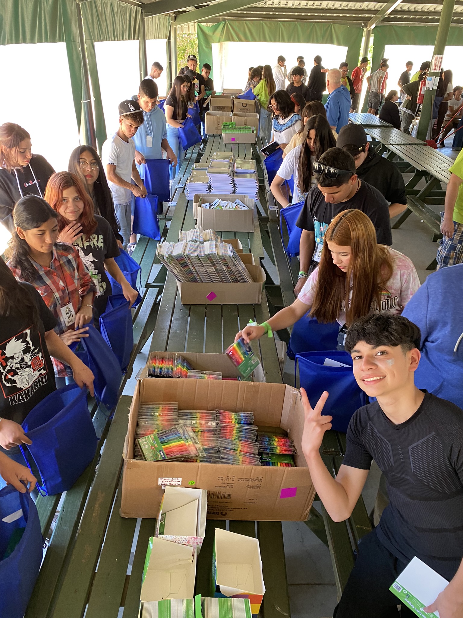 As humanitarian missionaries in the South America South Area, we are responsible for facilitating the service project held during these summer youth conferences. Last year we assisted the youth in assembling 4,600 school kits for vulnerable school children. This year youth all over Chile will assemble 8,000 school kits in 10 different sessions all over the country during the next six weeks. Our first session was with 330 youth living in the Santiago South Mission and it was held at Camp Cumorah Casablanca about an hour and a half outside of Santiago. They and their counselors assembled 360 school supply kits. Spending time with the youth is always a delight!