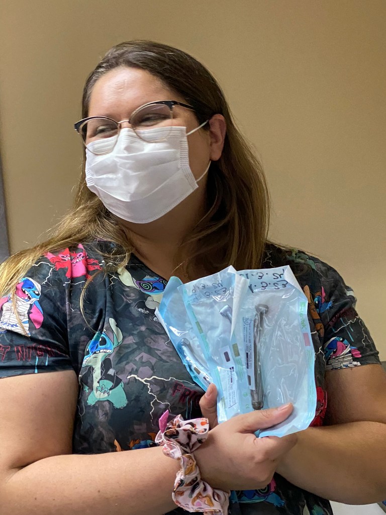 The dentist was operating with 3 dental handpieces and 2 contra-angle handpieces. The donation of additional instruments will improve the quality of patient care, providing enough instruments for the rotation to sterilize equipment without pausing patient care.