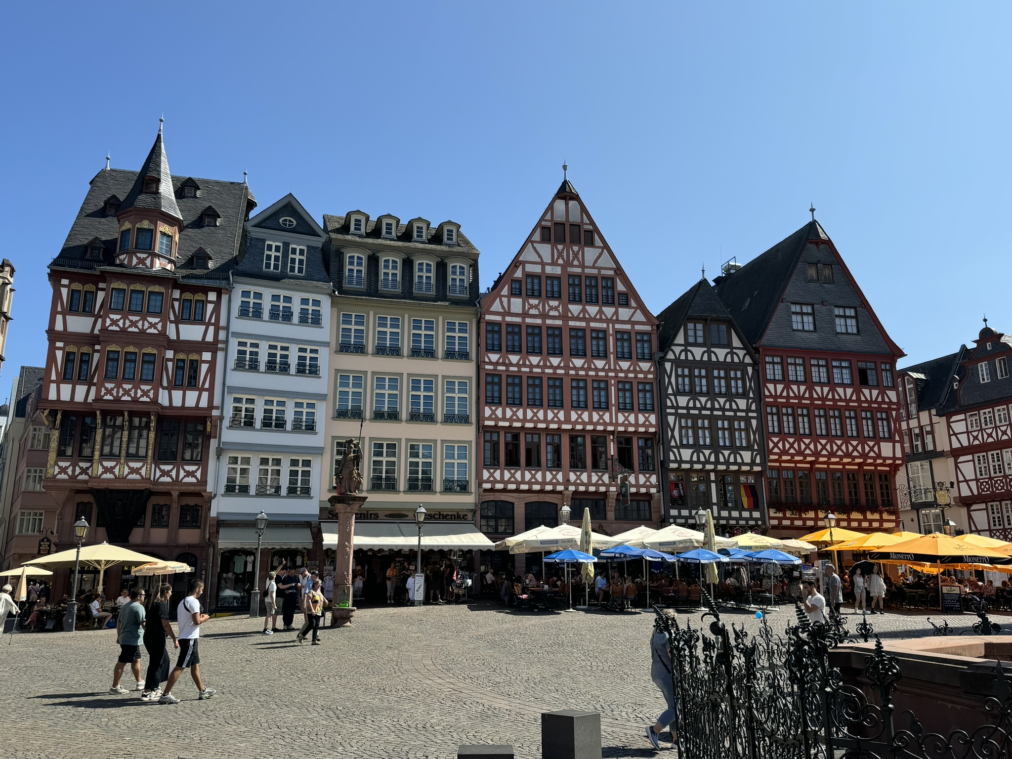 It is called Frankfurt’s New Old Town because the old town of Frankfurt Am Main was destroyed in an allied bombing raid in 1944. The old town quarter has been recreated. It includes 15 realistic reconstructions of the original structures. Some original house parts were used in the reconstruction. The only building that was left standing after the bombing was the Cathedral that was built in the 1500’s.
