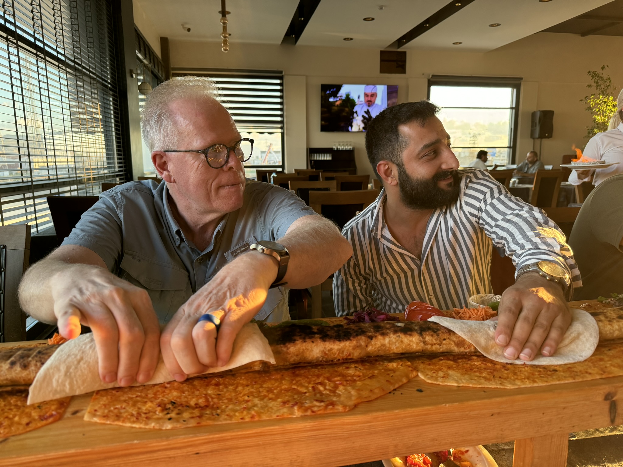 The day ended with another fabulous meal at our favorite kabob restaurant. All participate to hold the kebob as the chef pulls the skewer out of the center.