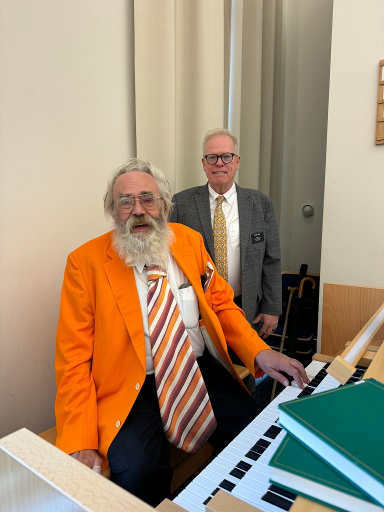 Making friends with our church organist.