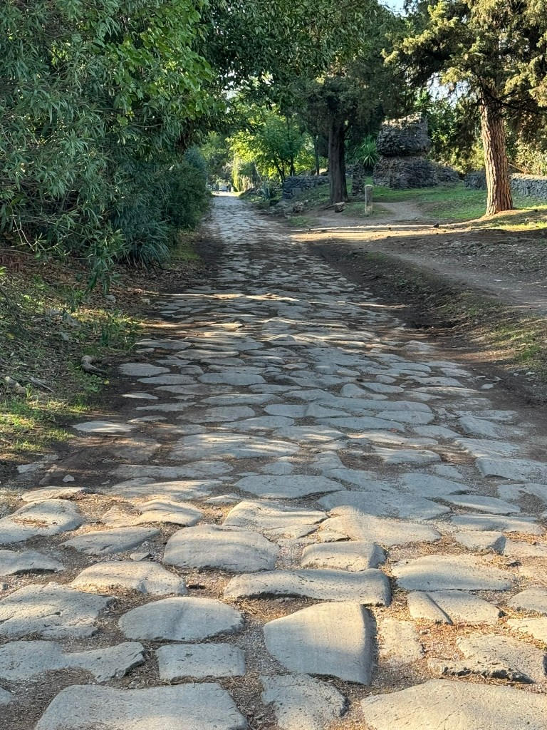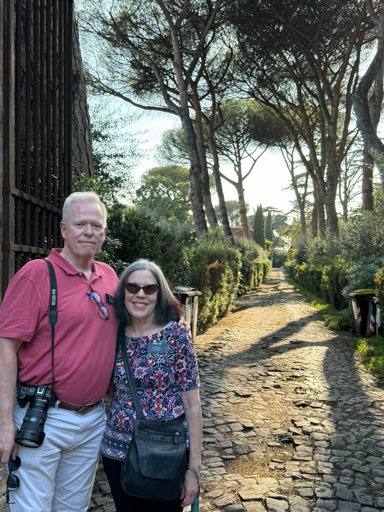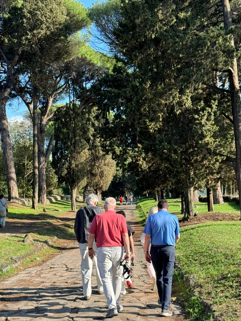 We walked a mile on the Appian Way. It was amazing to see ruts in the original stones from chariot wheels. The Appian Way (“Via Appia” in Italian) is one of the earliest and strategically most important Roman roads of the ancient republic. It was started in 312 BC. It connected Rome to Brindisi, facilitating trade, providing a path for military movement, and communication. Eleven roads entered Rome from all directions. Truly, all roads led to Rome.