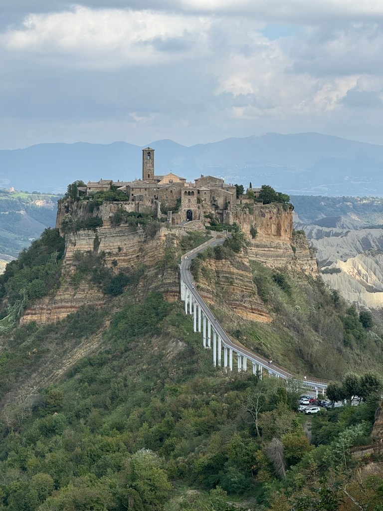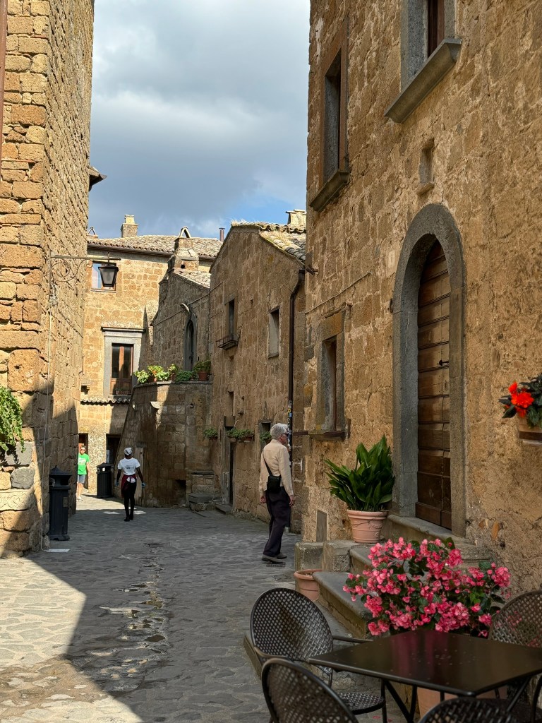 We drove to Bagnoregio where we crossed the bridge and climbed to the village called the jewel on the hill- Civita del Bagnoregio. This stunning gem has escaped the modern age because of its topography. This town teeters atop a crest rising high above a vast canyon. We were transported to the Middle Ages.