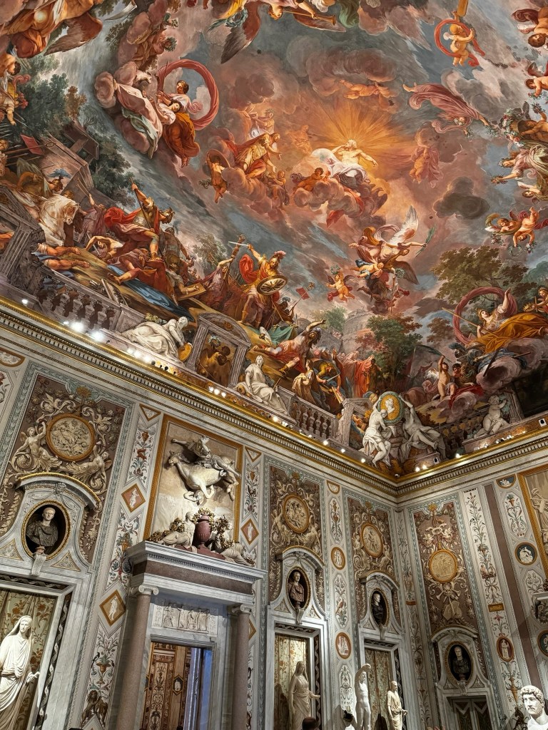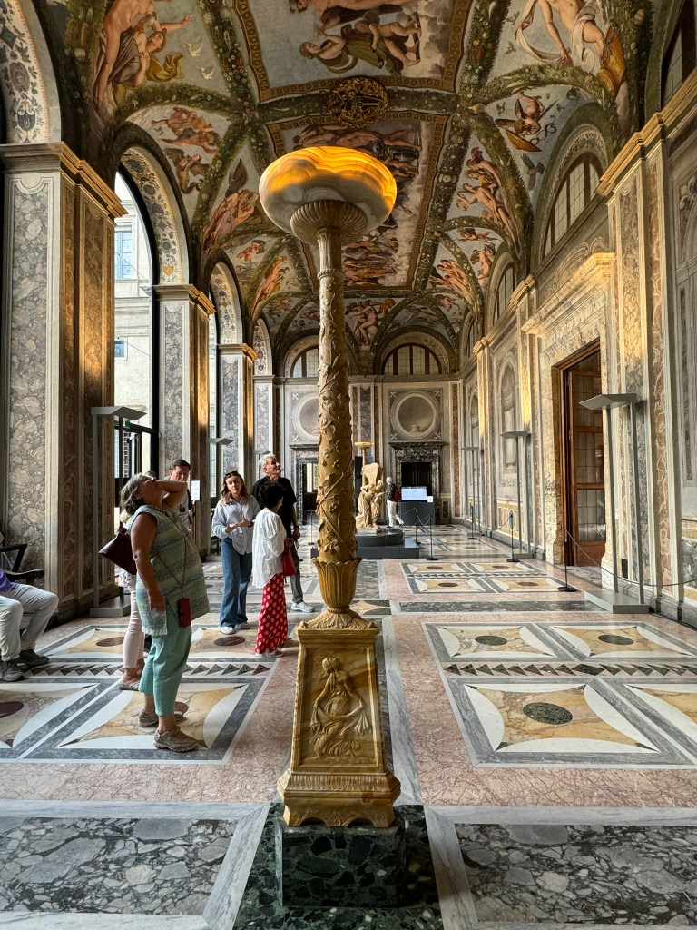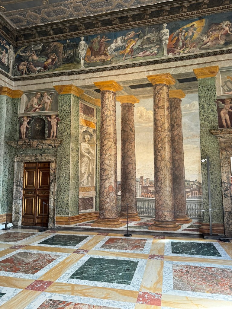 We toured Villa Farneina. Built in the early sixteenth century for the rich Sienese banker Agostino Chigi, this home boasts frescos by great masters such a Raphael.