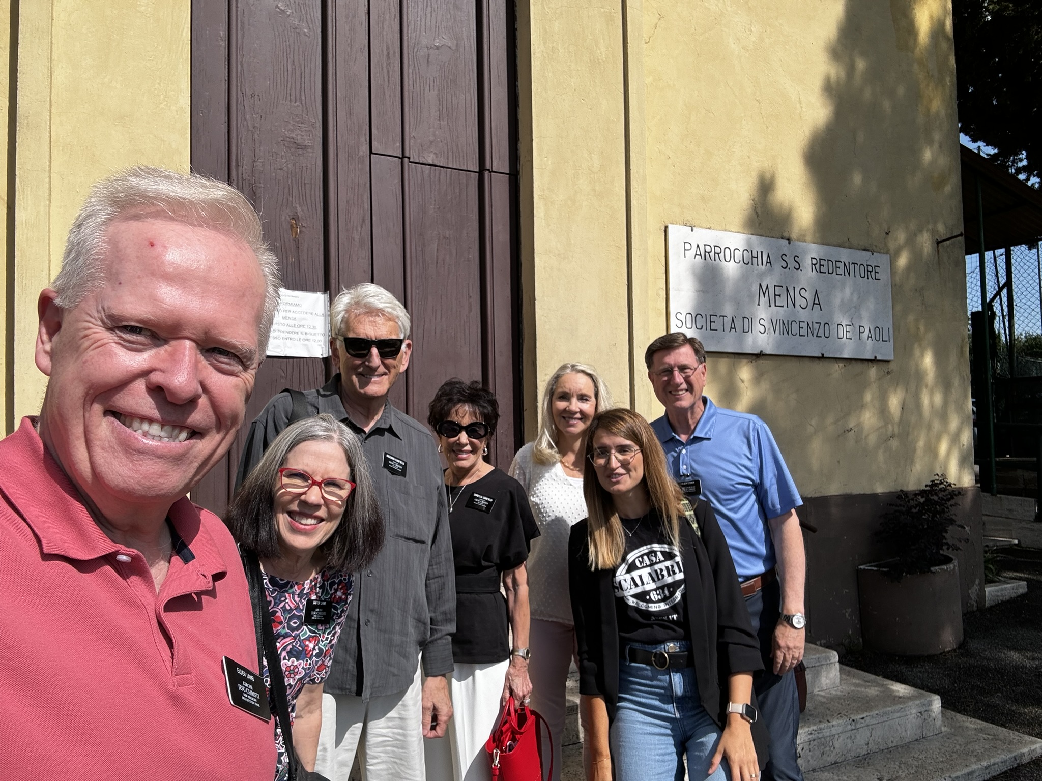 Each day we visited NGO’s that our church has worked with previously to renew connections and do long term evaluations on past projects; checking that donated equipment is still functioning properly. For more than 30 years the Scalabrinian Parish of Santissimo Redentore has run a soup kitchen serving 150 people lunch, six days a week. We were so impressed with the care the volunteers took to serve these people tableside as at a fine restaurant. Then on to Casa Scalabrini where 25 refugees live as they are helped to find jobs and housing and move towards self-reliance. Their motto is “More bridges; less walls.” Our Catholic friends are cherished humanitarian partners.
