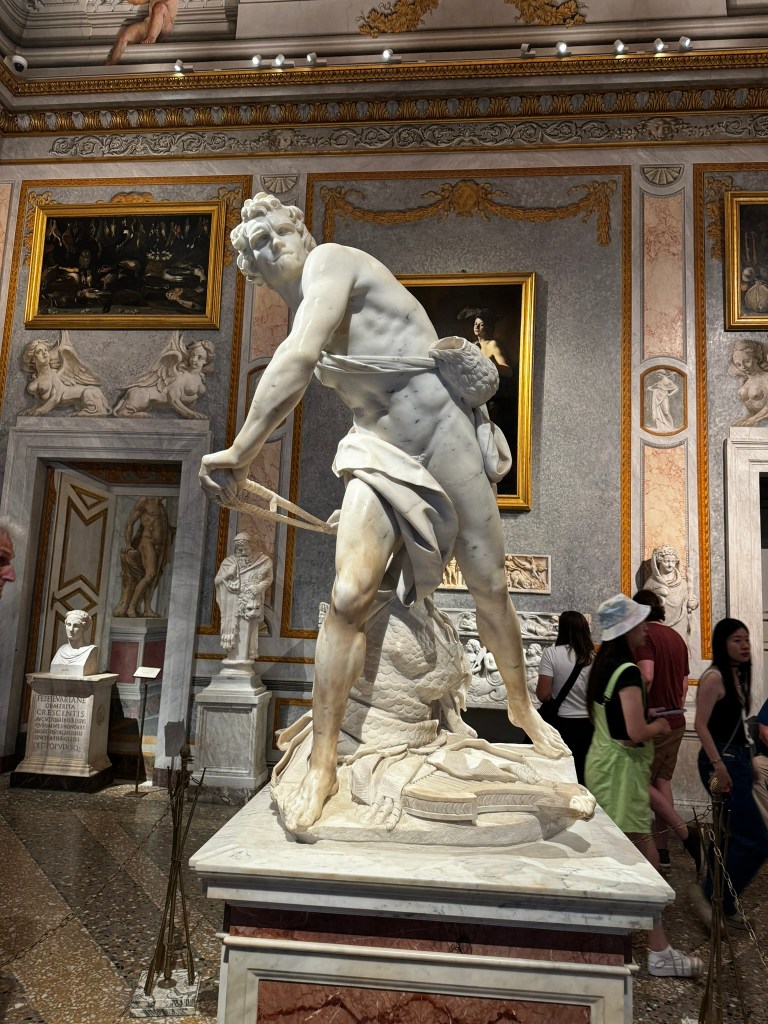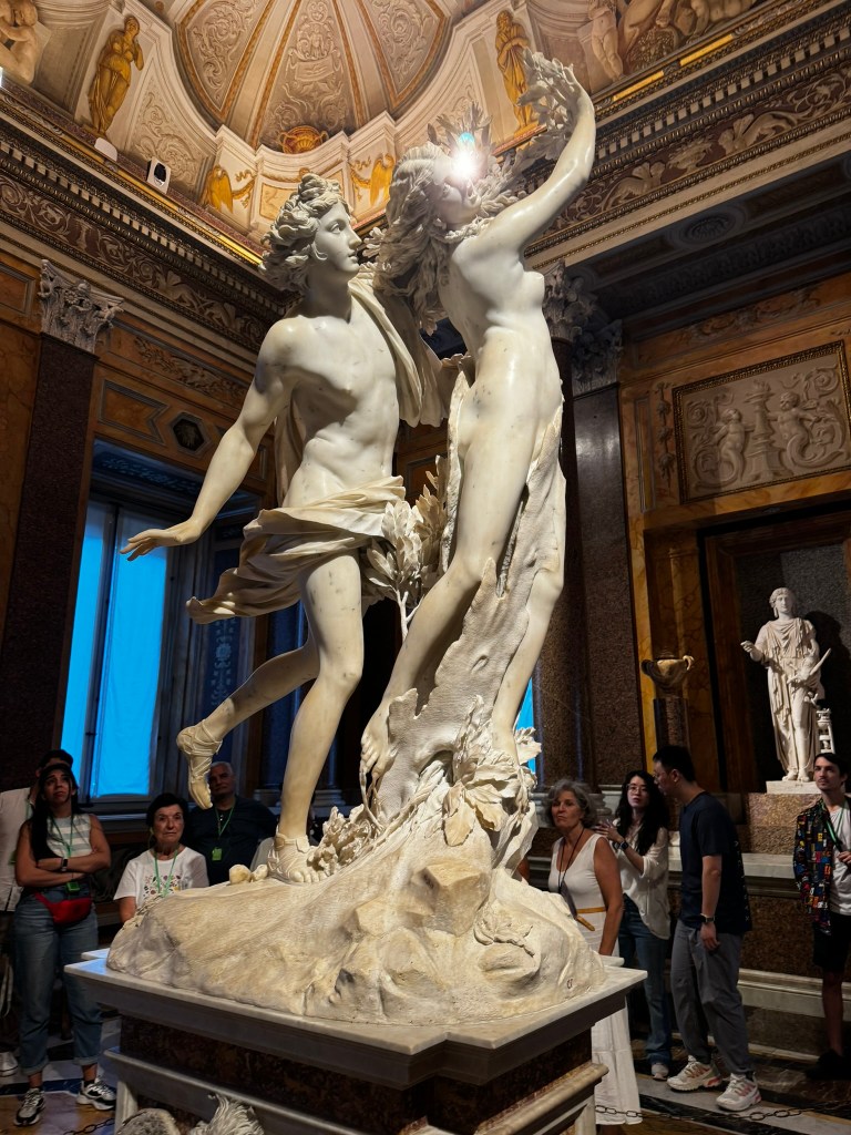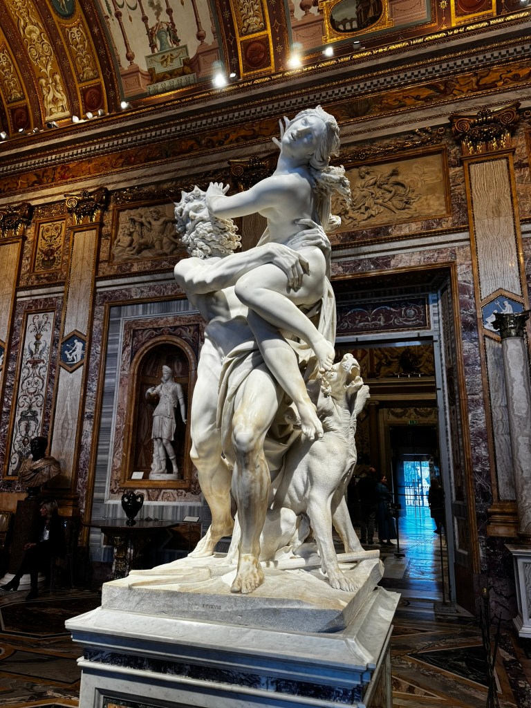 We walked through Villa Borghese Park and took the Borghese Gallery Tour. This museum home of the Borghese family was full of paintings and sculptors. We marveled at Gian Lorenzo Bernini’s sculptors: David, Rape of Proserpine, and Apollo & Daphene. Exquisite!