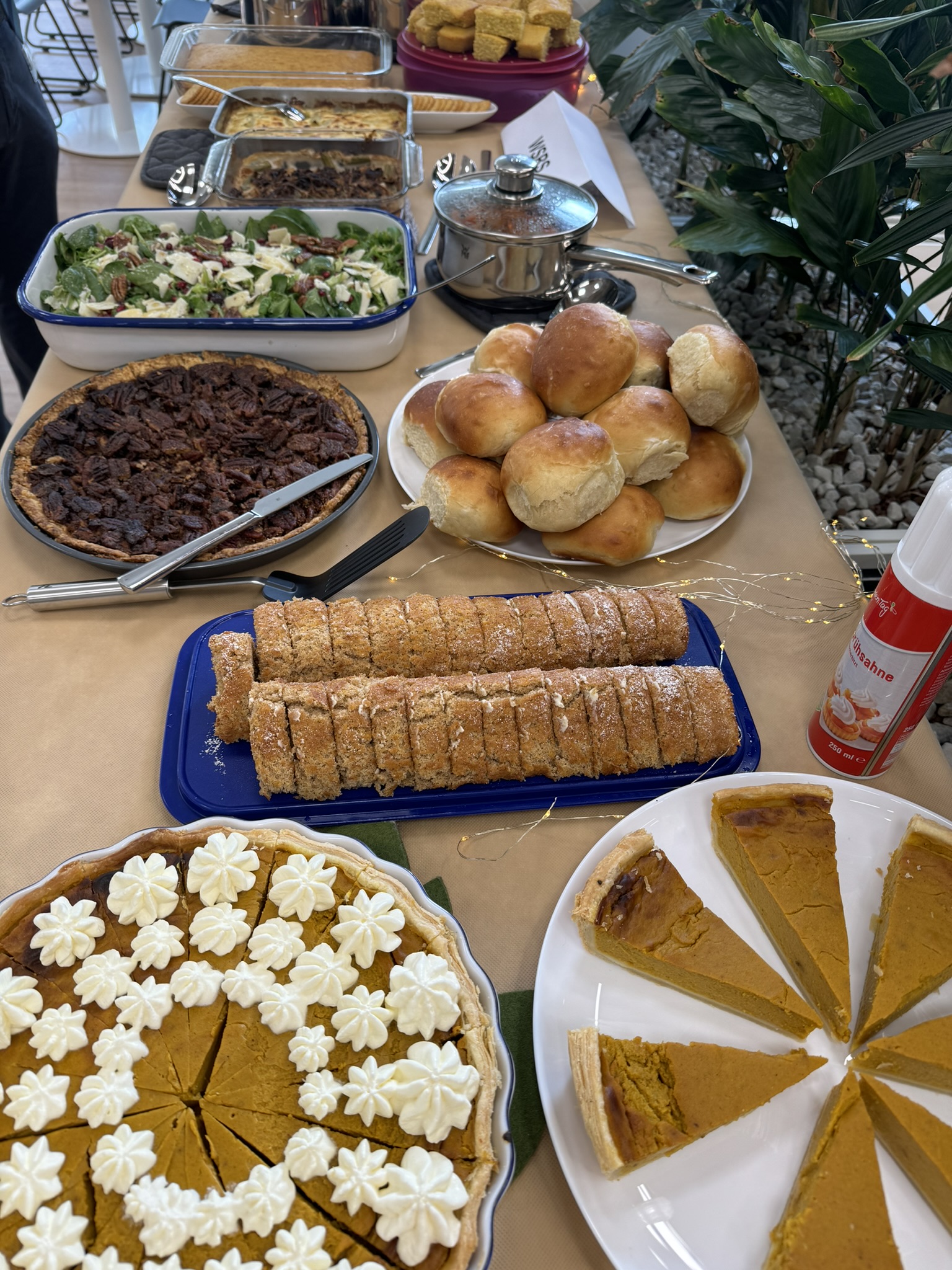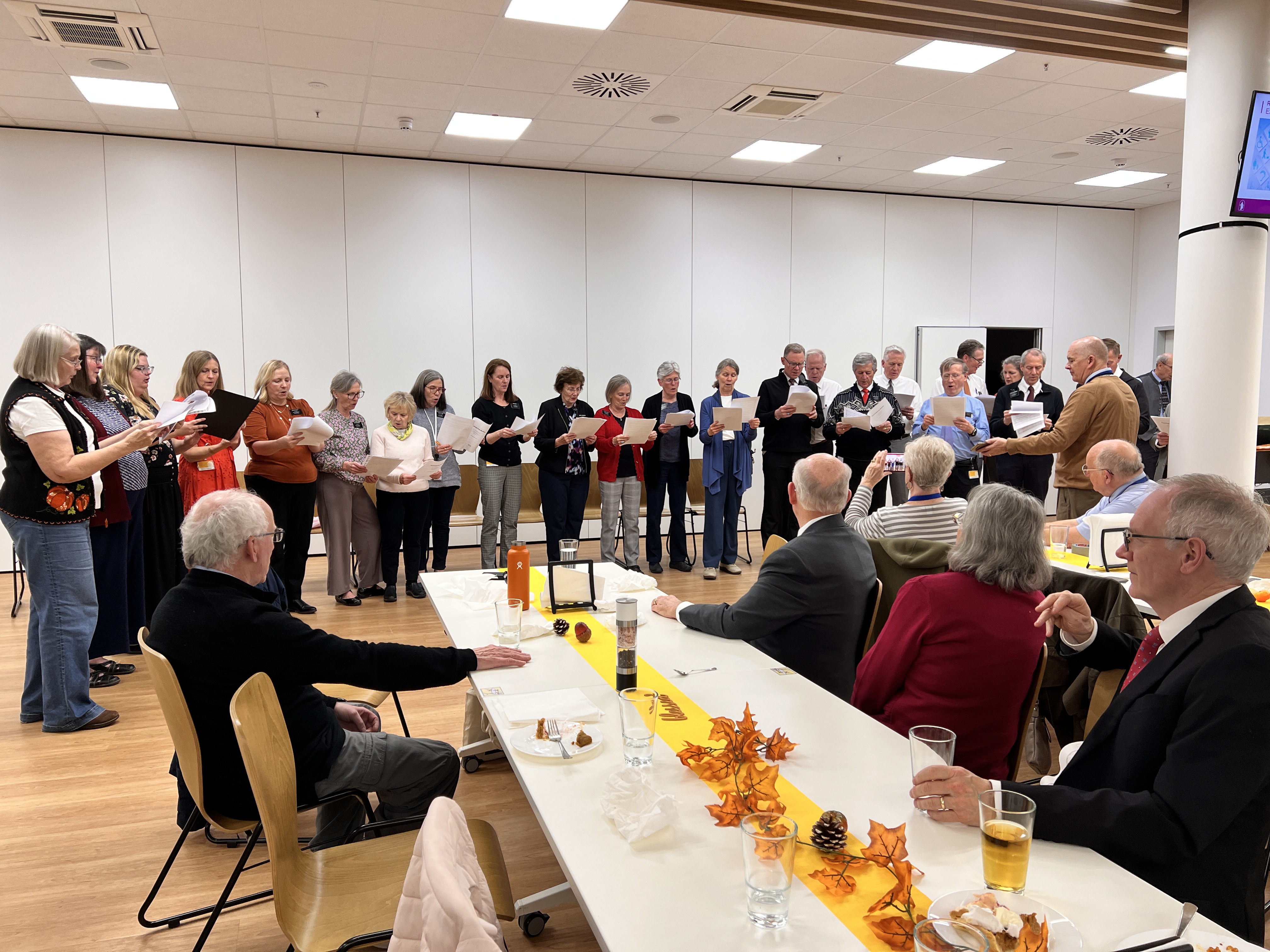 We were blessed to participate in two Thanksgiving celebrations this week. The first was on Monday night for Family Home Evening with the other couples we currently serve with in the office in Frankfurt. A delicious potluck dinner, an insta choir, and good company provided for a delightful evening.