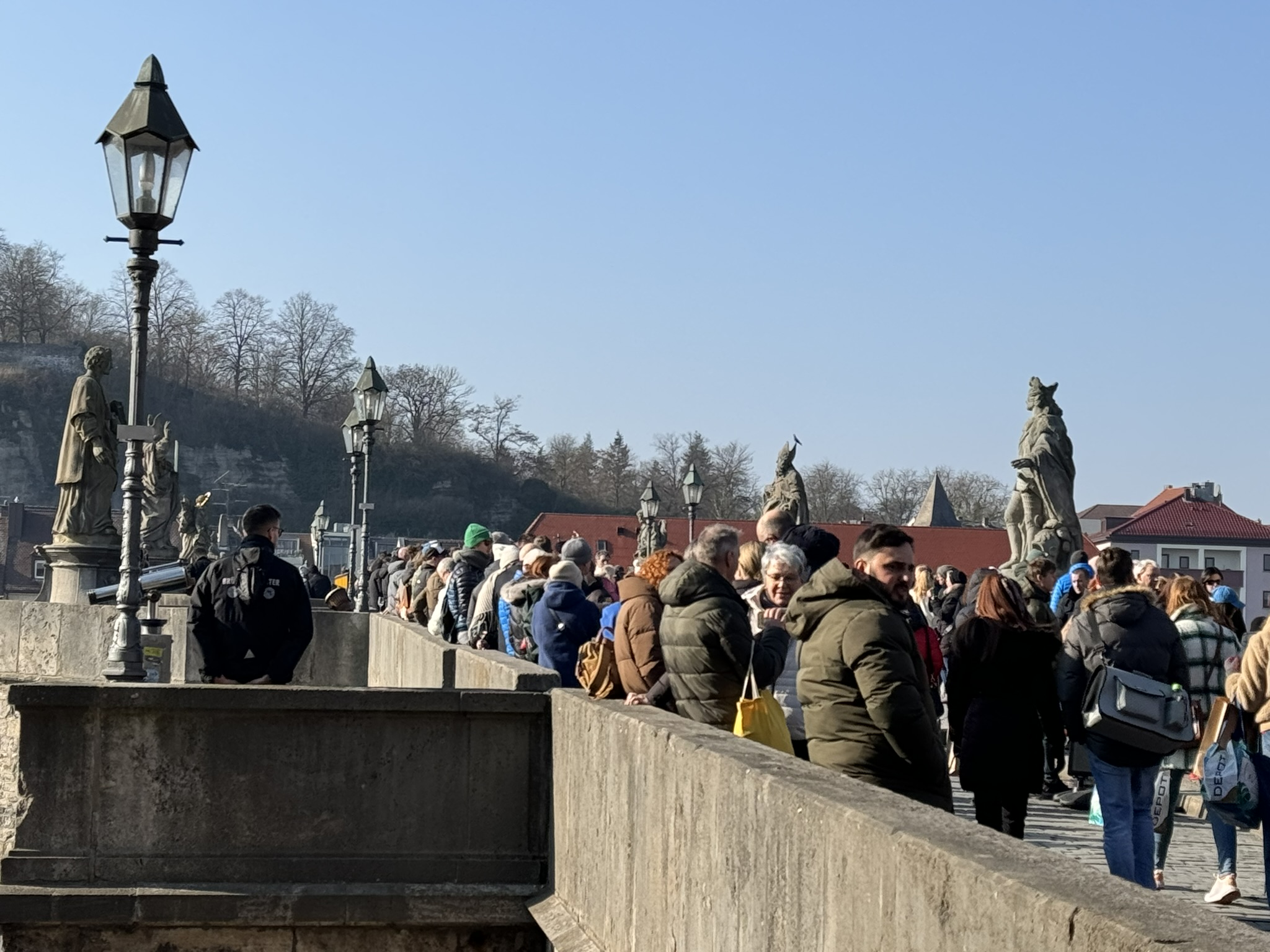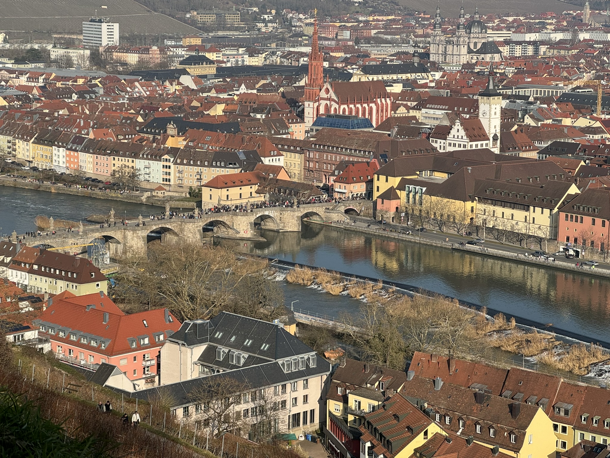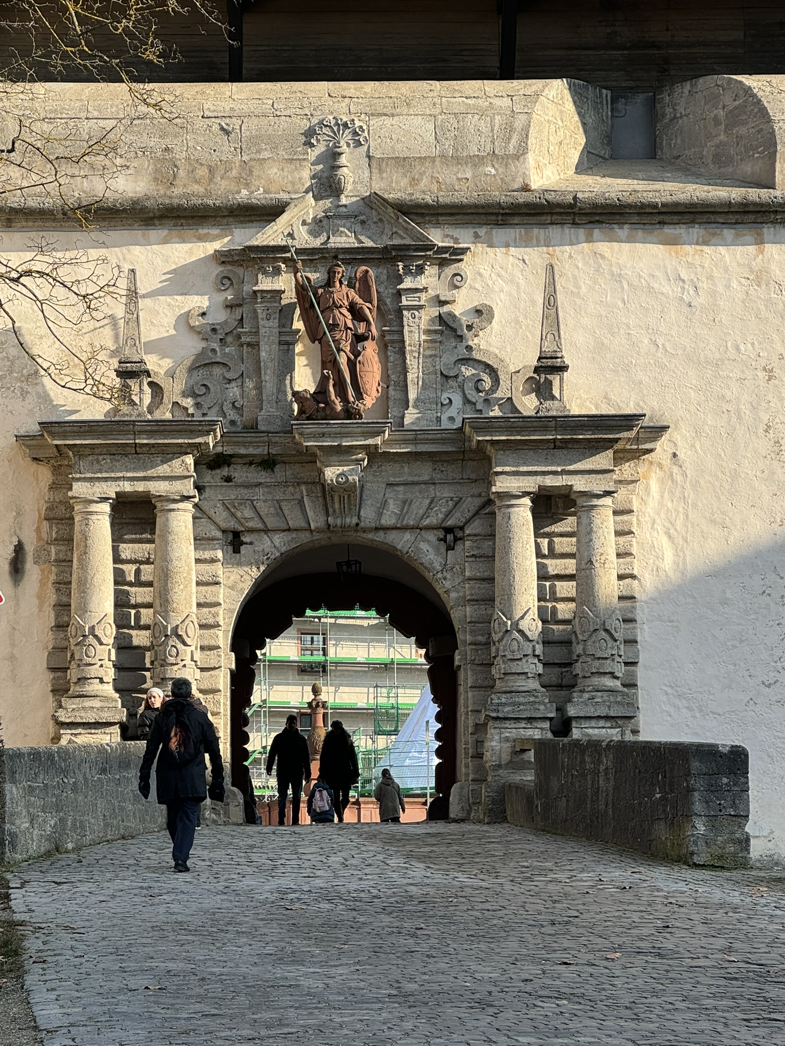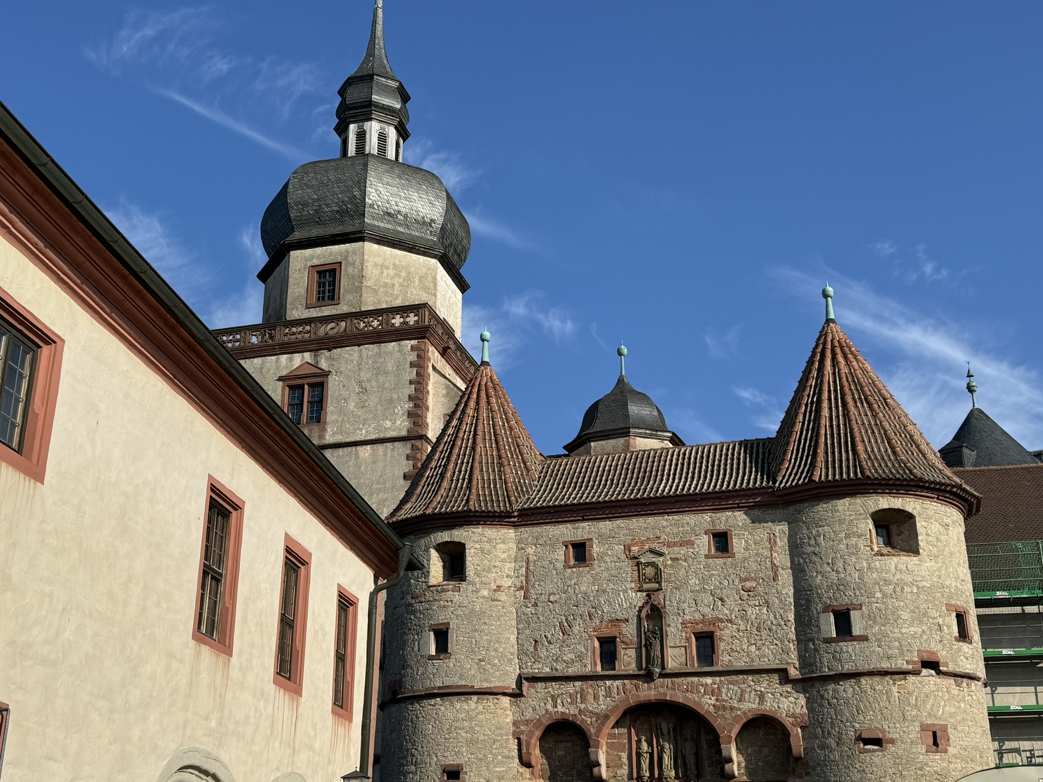 We climbed the hill to the Marienburg Fortress, a prominent landmark on the left bank of the Main River, which served as the home of the local prince-bishops for nearly five centuries. It has been a fort since ancient times although most of the current structures were built between the 16th and 18th centuries. Severely damaged by the bombing in 1945, it was only fully rebuilt in 1990. Today it houses two museums.
